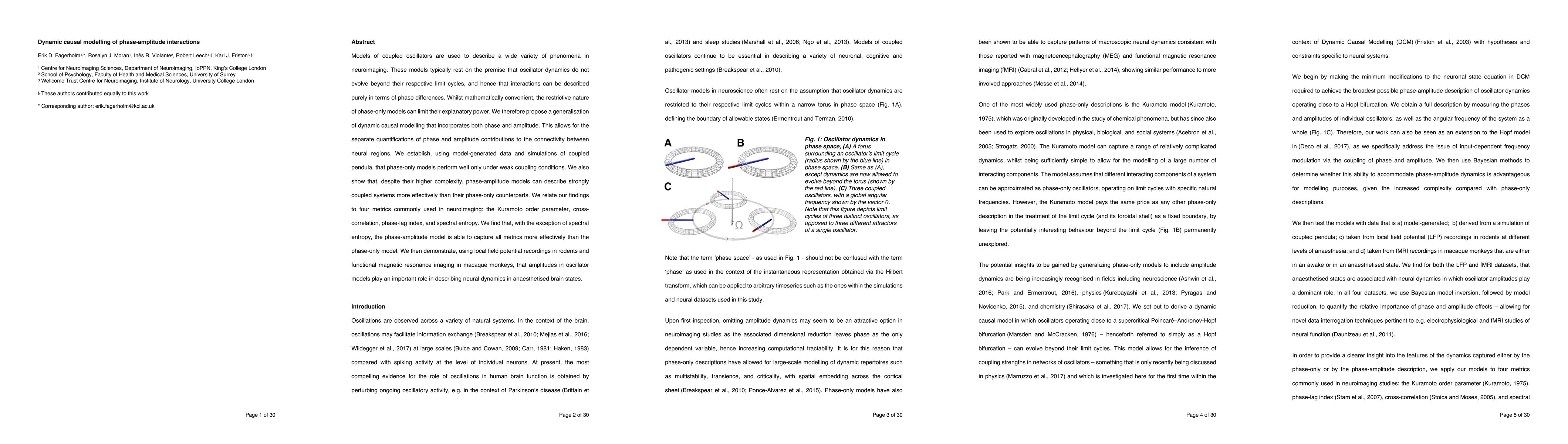 Models of coupled oscillators are used to describe a wide variety of phenomena in neuroimaging. These models typically rest on the premise that oscillator dynamics do not evolve beyond their respective limit cycles, and hence that interactions can be described purely in terms of phase differences. Whilst mathematically convenient, the restrictive nature of phase-only models can limit their explanatory power. We therefore propose a generalisation of dynamic causal modelling that incorporates both phase and amplitude. This allows for the separate quantifications of phase and amplitude contributions to the connectivity between neural regions. We establish, using model-generated data and simulations of coupled pendula, that phase-only models perform well only under weak coupling conditions. We also show that, despite their higher complexity, phase-amplitude models can describe strongly coupled systems more effectively than their phase-only counterparts. We relate our findings to four metrics commonly used in neuroimaging: the Kuramoto order parameter, cross-correlation, phase-lag index, and spectral entropy. We find that, with the exception of spectral entropy, the phase-amplitude model is able to capture all metrics more effectively than the phase-only model. We then demonstrate, using local field potential recordings in rodents and functional magnetic resonance imaging in macaque monkeys, that amplitudes in oscillator models play an important role in describing neural dynamics in anaesthetised brain states.