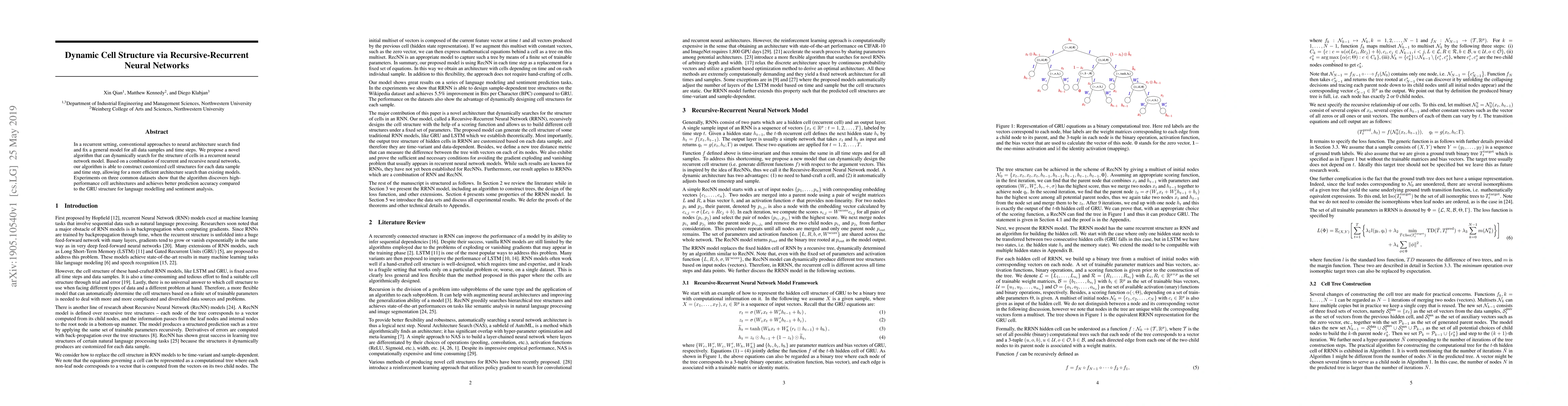 This paper introduces a novel algorithm that dynamically searches for customized cell structures in recurrent neural networks for each data sample and time step, outperforming conventional static models. Experimental results on three datasets demonstrate superior prediction accuracy compared to the GRU structure in language modeling and sentiment analysis.