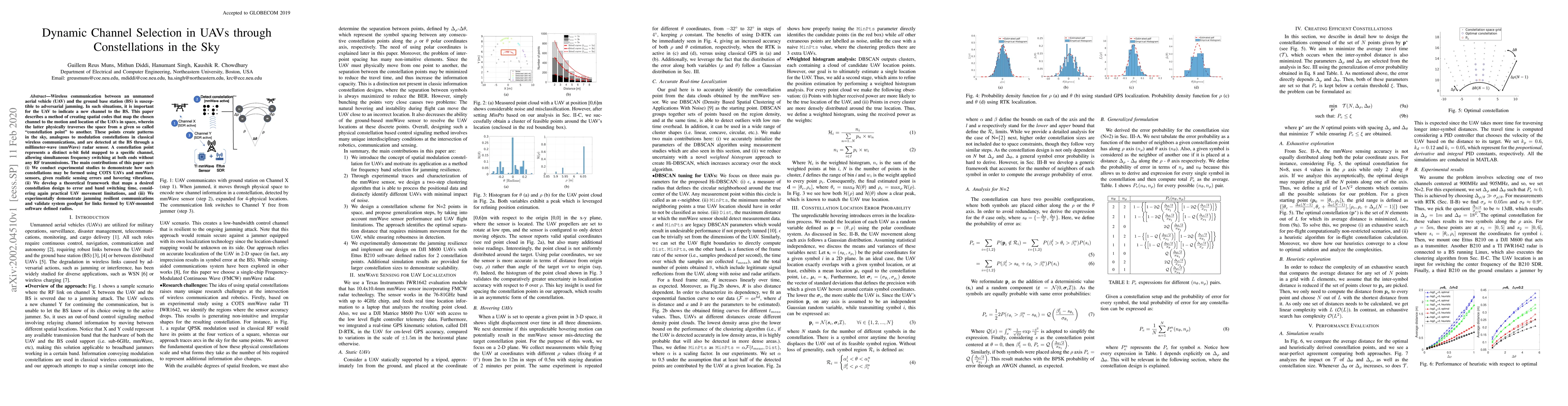 Wireless communication between an unmanned aerial vehicle (UAV) and the ground base station (BS) is susceptible to adversarial jamming. In such situations, it is important for the UAV to indicate a new channel to the BS. This paper describes a method of creating spatial codes that map the chosen channel to the motion and location of the UAVs in space, wherein the latter physically traverses the space from a given so called "constellation point'' to another. These points create patterns in the sky, analogous to modulation constellations in classical wireless communications, and are detected at the BS through a millimeter-wave (mmWave) radar sensor. A constellation point represents a distinct n-bit field mapped to a specific channel, allowing simultaneous frequency switching at both ends without any RF transmissions. The main contributions of this paper are: (i) We conduct experimental studies to demonstrate how such constellations may be formed using COTS UAVs and mmWave sensors, given realistic sensing errors and hovering vibrations, (ii) We develop a theoretical framework that maps a desired constellation design to error and band switching time, considering again practical UAV movement limitations, and (iii) We experimentally demonstrate jamming resilient communications and validate system goodput for links formed by UAV-mounted software defined radios.