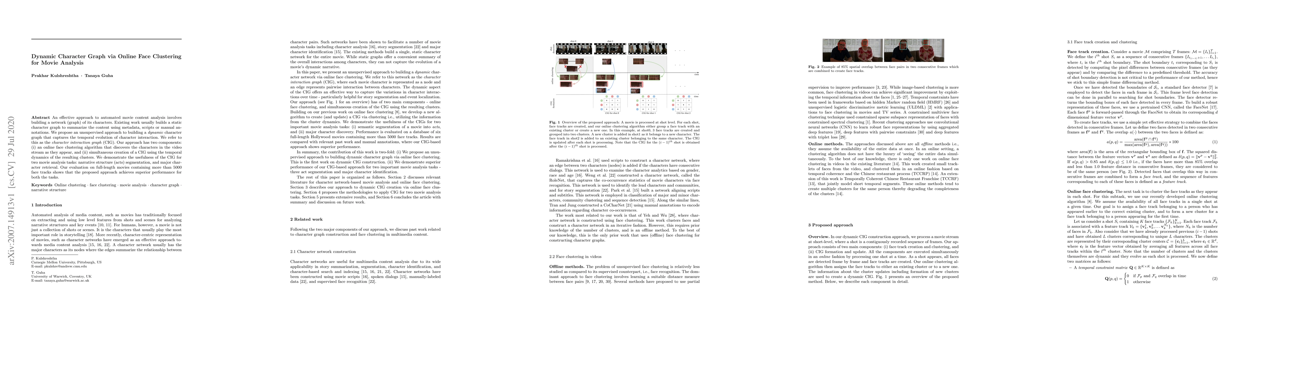 This paper proposes an unsupervised method for constructing a dynamic character interaction graph (CIG) to analyze movie content, using an online face clustering algorithm to identify characters and a CIG to capture evolving character interactions. The method outperforms existing static approaches in segmenting narrative structure and retrieving major characters.
