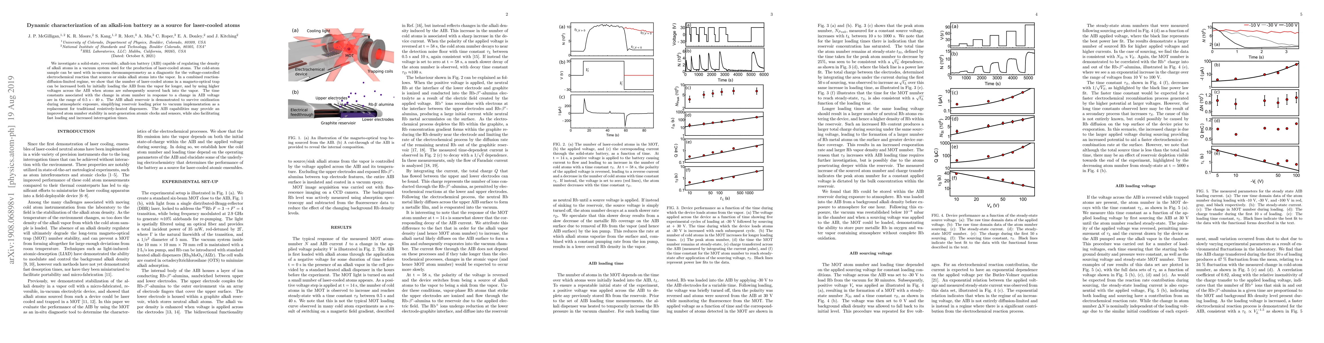 This paper explores a solid-state alkali-ion battery (AIB) that regulates alkali atoms in a vacuum system for laser-cooling, enhancing magneto-optical trap atom counts via voltage-controlled electrochemical reactions. The AIB's stability and fast response times (0.5 s - 40 s) improve atomic clock and sensor performance.