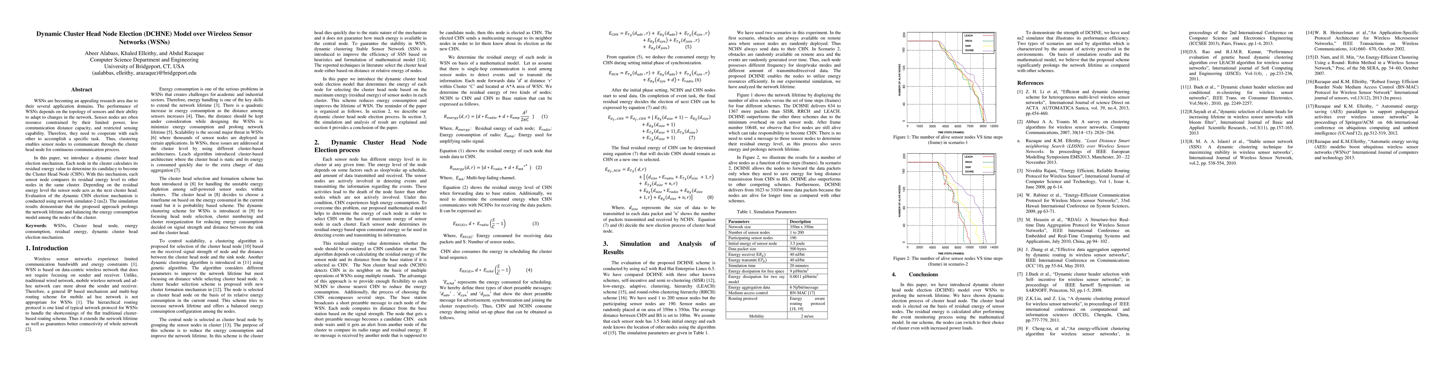 This paper proposes a Dynamic Cluster Head Node Election (DCHNE) model for wireless sensor networks (WSNs) that enhances network longevity and energy balancing. Each sensor node calculates its residual energy to determine its candidacy for Cluster Head Node, optimizing cluster head selection based on energy levels.