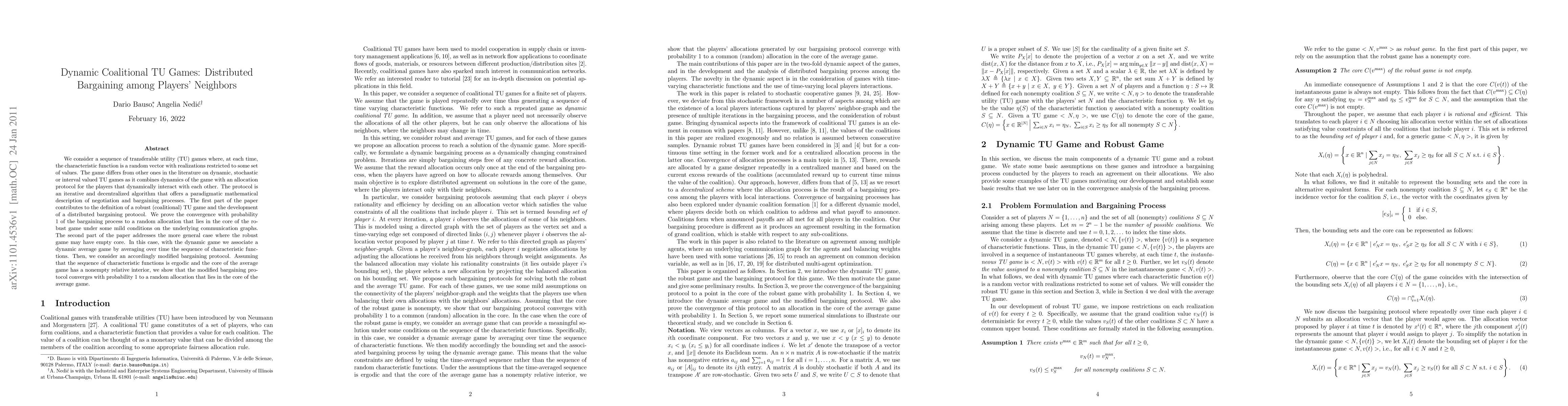 We consider a sequence of transferable utility (TU) games where, at each time, the characteristic function is a random vector with realizations restricted to some set of values. The game differs from other ones in the literature on dynamic, stochastic or interval valued TU games as it combines dynamics of the game with an allocation protocol for the players that dynamically interact with each other. The protocol is an iterative and decentralized algorithm that offers a paradigmatic mathematical description of negotiation and bargaining processes. The first part of the paper contributes to the definition of a robust (coalitional) TU game and the development of a distributed bargaining protocol. We prove the convergence with probability 1 of the bargaining process to a random allocation that lies in the core of the robust game under some mild conditions on the underlying communication graphs. The second part of the paper addresses the more general case where the robust game may have empty core. In this case, with the dynamic game we associate a dynamic average game by averaging over time the sequence of characteristic functions. Then, we consider an accordingly modified bargaining protocol. Assuming that the sequence of characteristic functions is ergodic and the core of the average game has a nonempty relative interior, we show that the modified bargaining protocol converges with probability 1 to a random allocation that lies in the core of the average game.