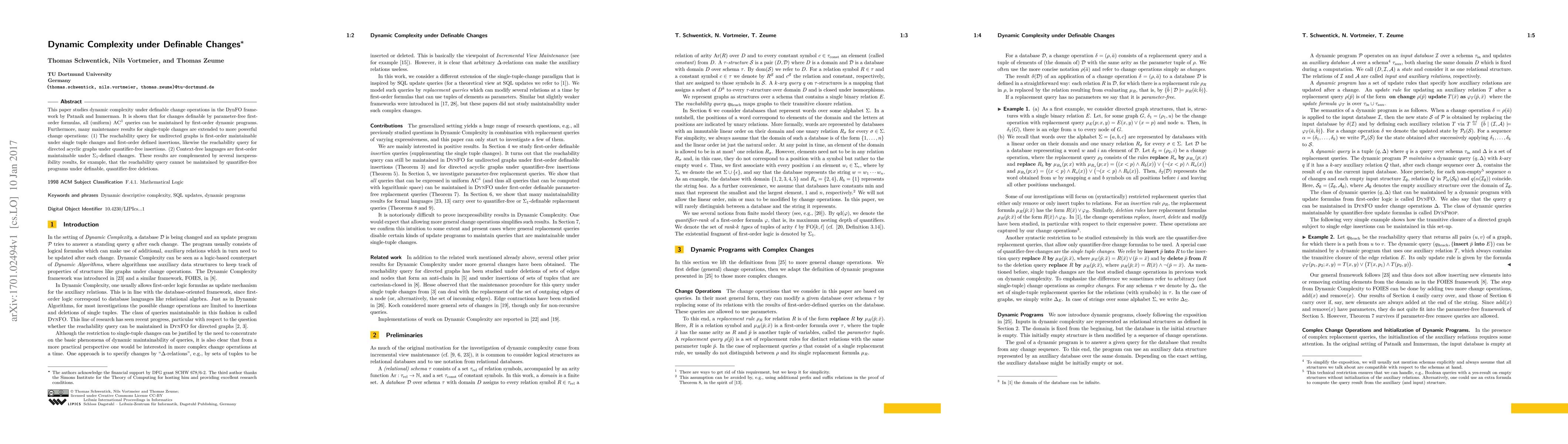This paper explores dynamic complexity in the DynFO framework, demonstrating that $AC^1$ queries can be maintained by first-order dynamic programs under definable changes. It extends first-order maintainability to various powerful change operations, including reachability queries in graphs and context-free languages, while also highlighting inexpressibility results for certain deletion operations.