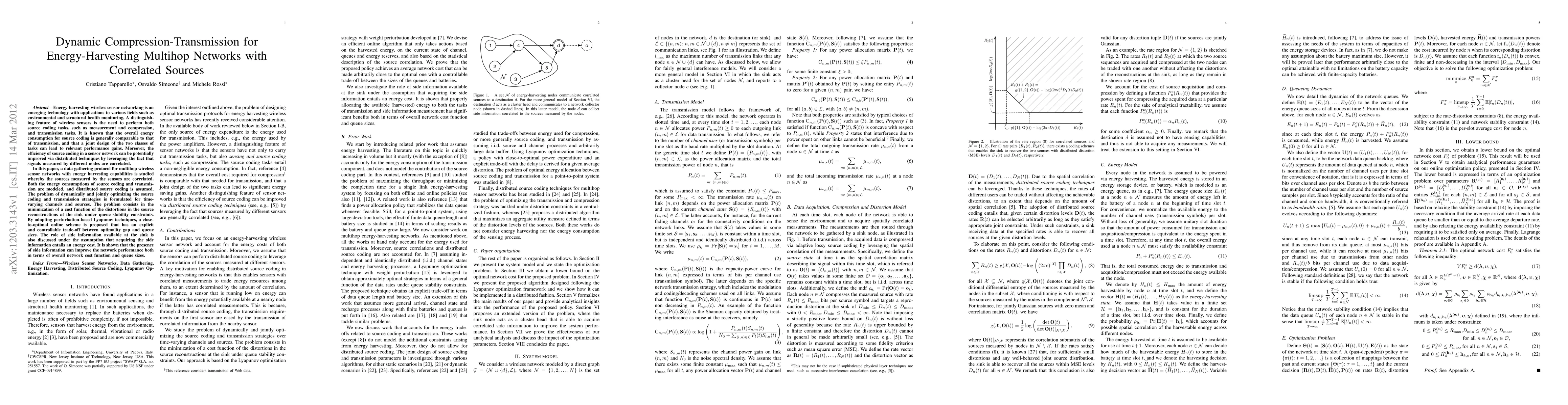 This paper proposes a dynamic compression-transmission protocol for energy-harvesting multihop wireless sensor networks with correlated sources, aiming to optimize both source coding and transmission strategies. Using perturbation-based Lyapunov techniques, an online scheme is developed to minimize distortion under queue stability, demonstrating improved network performance with side information.