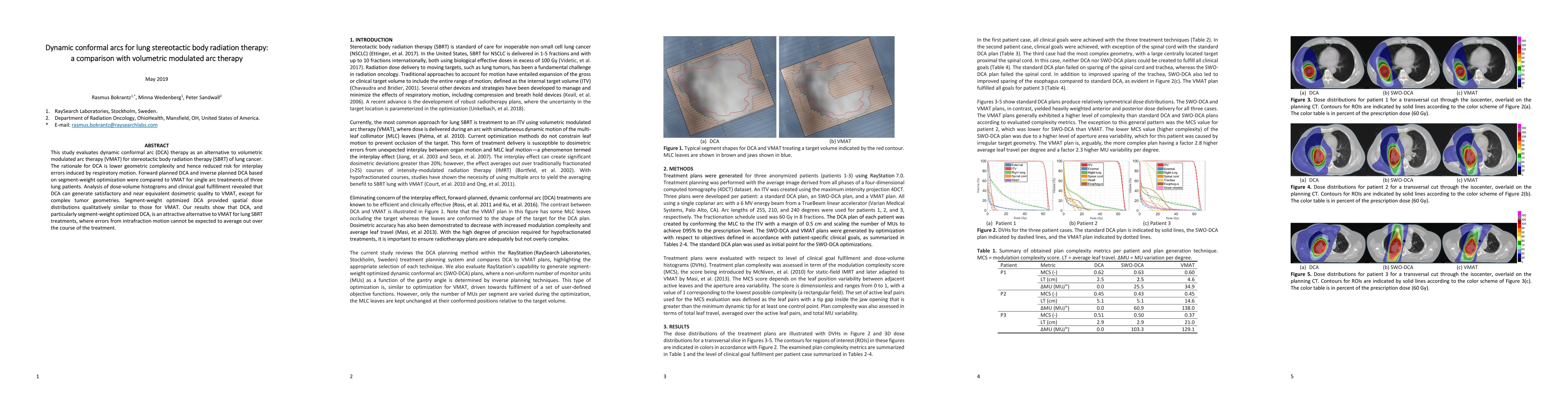 This study compares dynamic conformal arc (DCA) therapy to volumetric modulated arc therapy (VMAT) for lung stereotactic body radiation therapy (SBRT), showing that DCA offers comparable dosimetric quality with lower geometric complexity and reduced risk of interplay errors. Segment-weight optimized DCA provides dose distributions similar to VMAT, making it a viable alternative for lung SBRT.