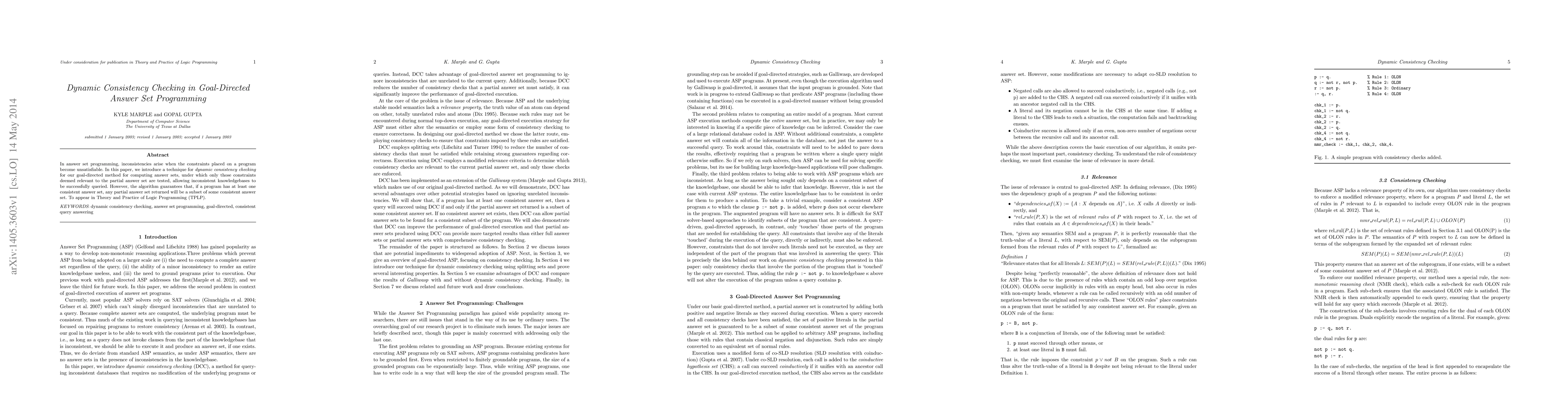 This paper proposes a dynamic consistency checking technique for goal-directed answer set programming, ensuring that only relevant constraints are tested, allowing inconsistent knowledge bases to be queried while guaranteeing that any partial answer set returned is a subset of a consistent answer set. The method aims to improve the efficiency and reliability of answer set computations.