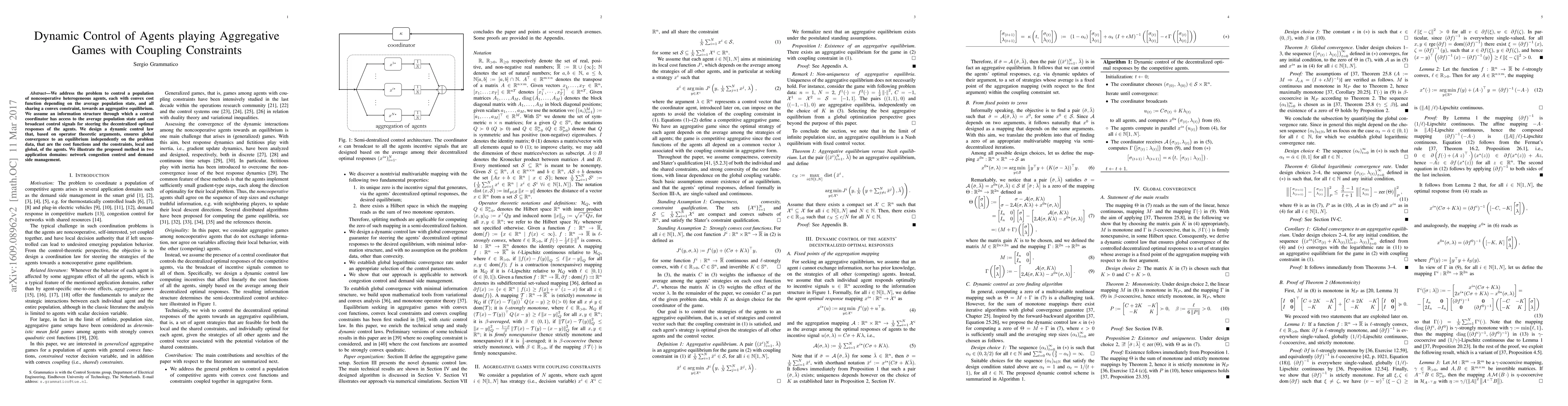 Researchers develop a dynamic control law to steer agents towards an aggregative equilibrium in noncooperative games with constraints, ensuring global convergence regardless of the problem data.