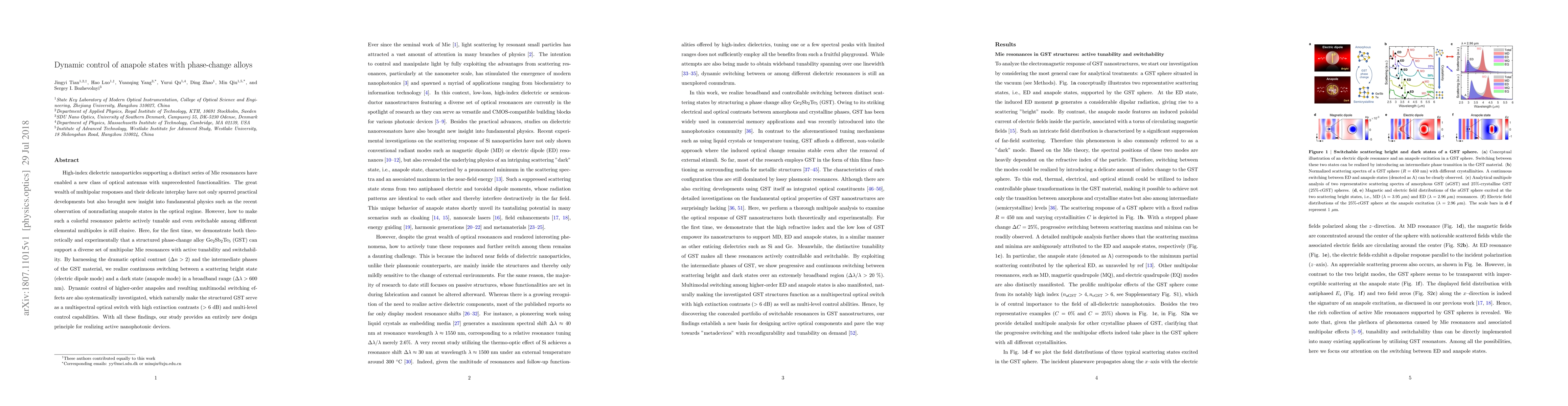 High-index dielectric nanoparticles supporting a distinct series of Mie resonances have enabled a new class of optical antennas with unprecedented functionalities. The great wealth of multipolar responses and their delicate interplay have not only spurred practical developments but also brought new insight into fundamental physics such as the recent observation of nonradiating anapole states in the optical regime. However, how to make such a colorful resonance palette actively tunable and even switchable among different elemental multipoles is still elusive. Here, for the first time, we demonstrate both theoretically and experimentally that a structured phase-change alloy Ge$_2$Sb$_2$Te$_5$ (GST) can support a diverse set of multipolar Mie resonances with active tunability and switchability. By harnessing the dramatic optical contrast ({\Delta}n > 2) and the intermediate phases of the GST material, we realize continuous switching between a scattering bright state (electric dipole mode) and a dark state (anapole mode) in a broadband range ({\Delta}{\lambda} > 600 nm). Dynamic control of higher-order anapoles and resulting multimodal switching effects are also systematically investigated, which naturally make the structured GST serve as a multispectral optical switch with high extinction contrasts (> 6 dB) and multi-level control capabilities. With all these findings, our study provides an entirely new design principle for realizing active nanophotonic devices.