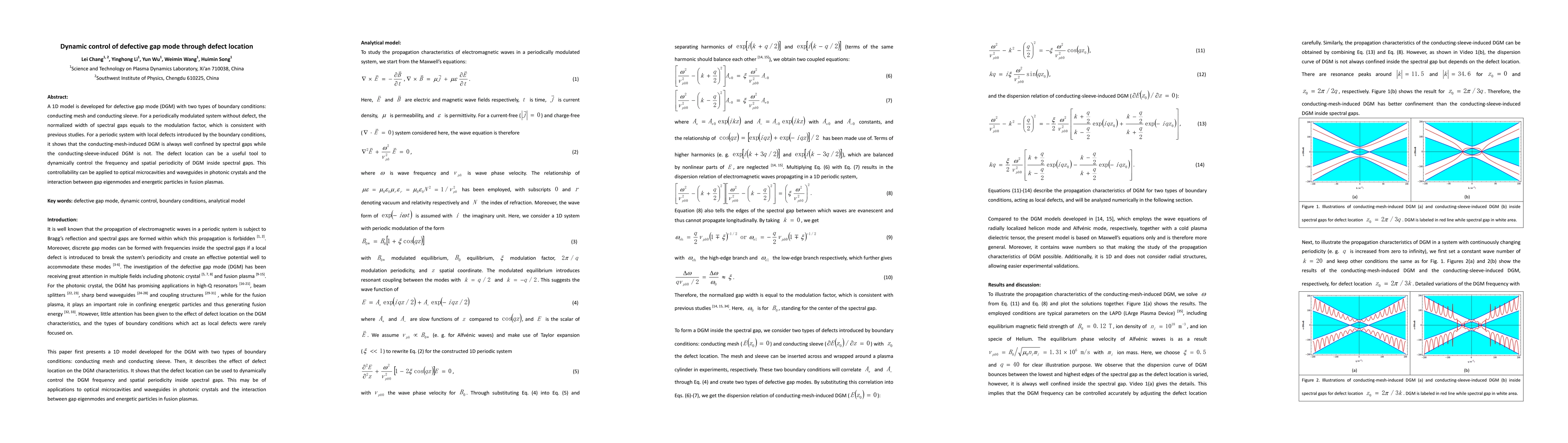 Researchers developed a 1D model to control defective gap mode through defect location in periodically modulated systems, showing promise for applications in optical microcavities and fusion plasmas.