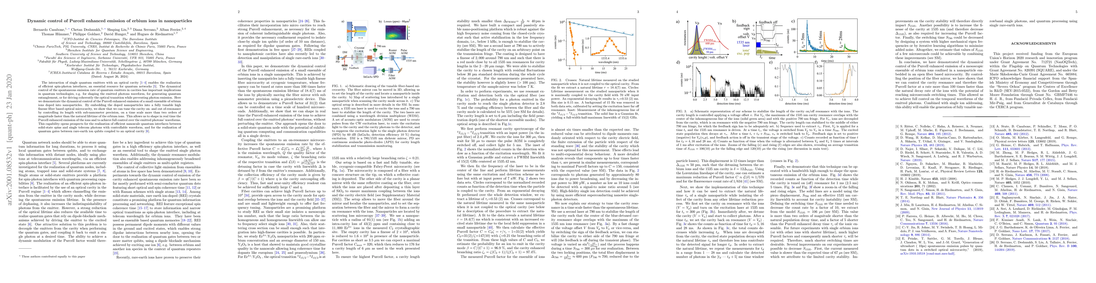 This paper demonstrates the dynamic control of Purcell enhanced emission from erbium ions in nanoparticles using a tunable optical microcavity. By precisely adjusting the cavity length, the researchers achieve real-time shaping of the emitted photons' waveforms, paving the way for advanced quantum technologies.