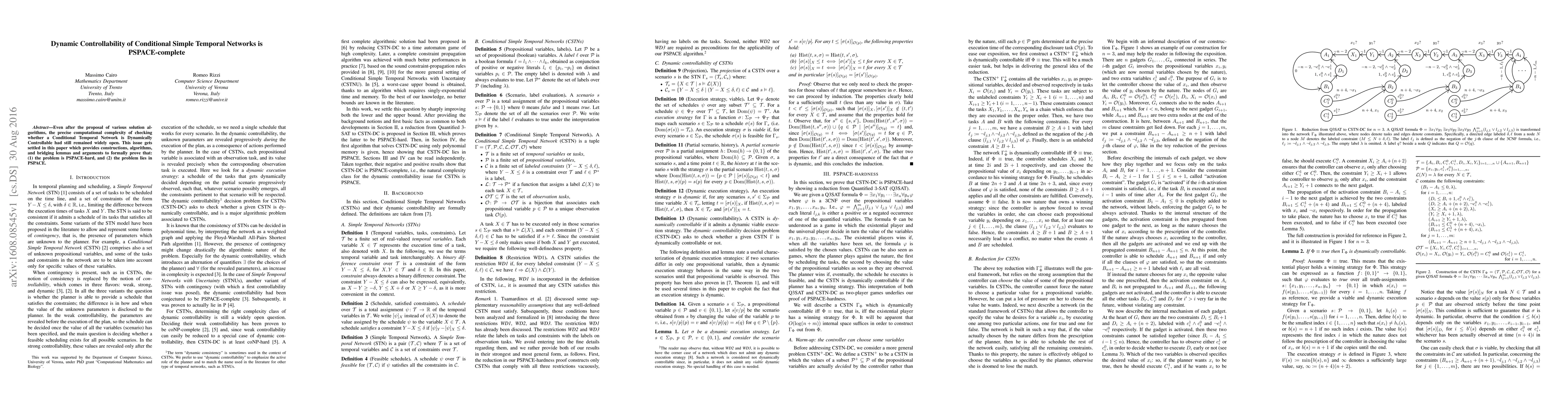The computational complexity of checking if a Conditional Temporal Network is dynamically controllable has been proven to be PSPACE-complete, settling an open issue in the field.