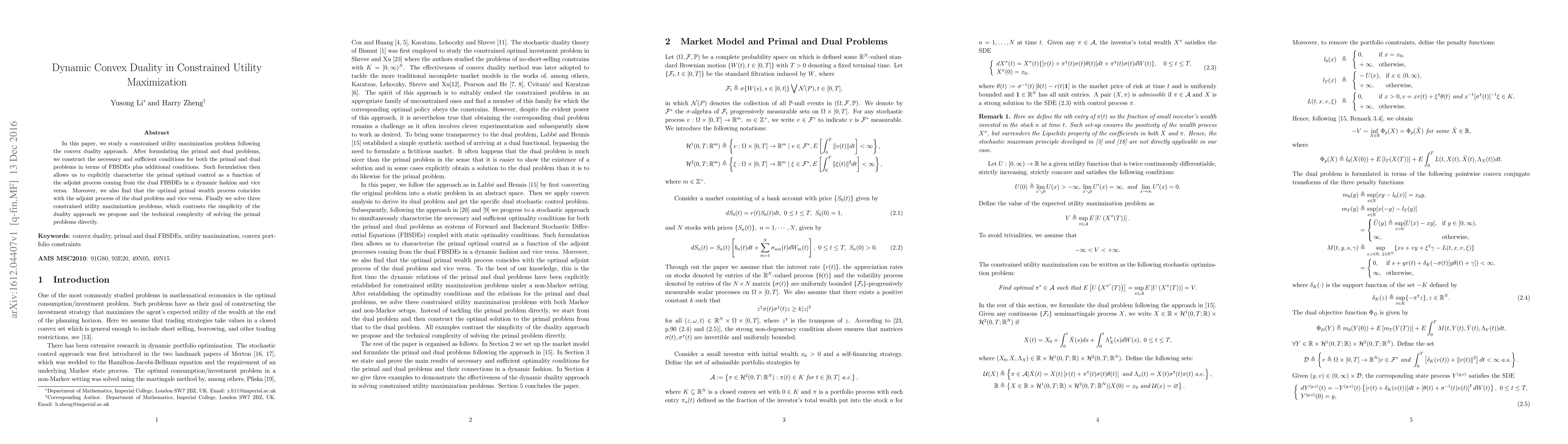 This paper explores a constrained utility maximization problem using convex duality, formulating both primal and dual problems and deriving necessary conditions via FBSDEs. It characterizes the optimal control dynamically and demonstrates the equivalence of optimal wealth processes in primal and dual forms, ultimately showcasing the simplicity of the duality approach in solving specific problems.