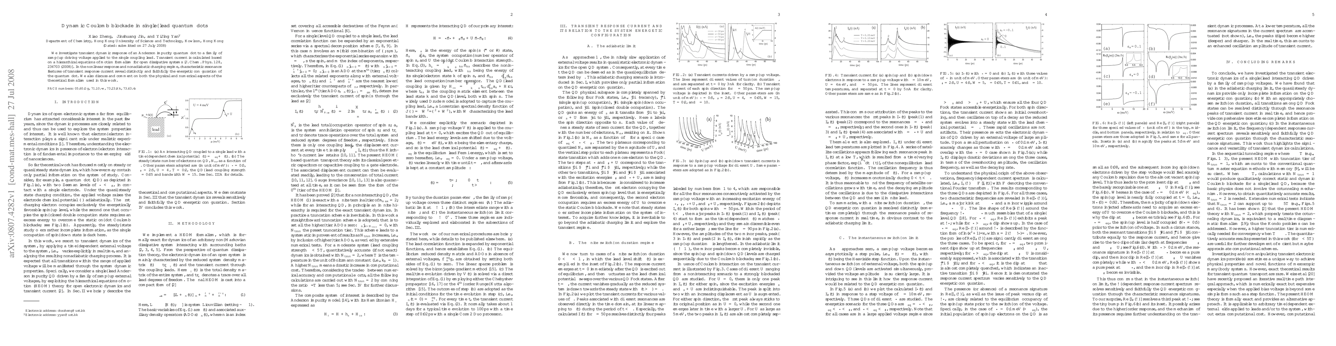 We investigate transient dynamic response of an Anderson impurity quantum dot to a family of ramp-up driving voltage applied to the single coupling lead. Transient current is calculated based on a hierarchical equations of motion formalism for open dissipative systems [J. Chem. Phys. 128, 234703 (2008)]. In the nonlinear response and nonadiabatic charging regime, characteristic resonance features of transient response current reveal distinctly and faithfully the energetic configuration of the quantum dot. We also discuss and comment on both the physical and numerical aspects of the theoretical formalism used in this work.