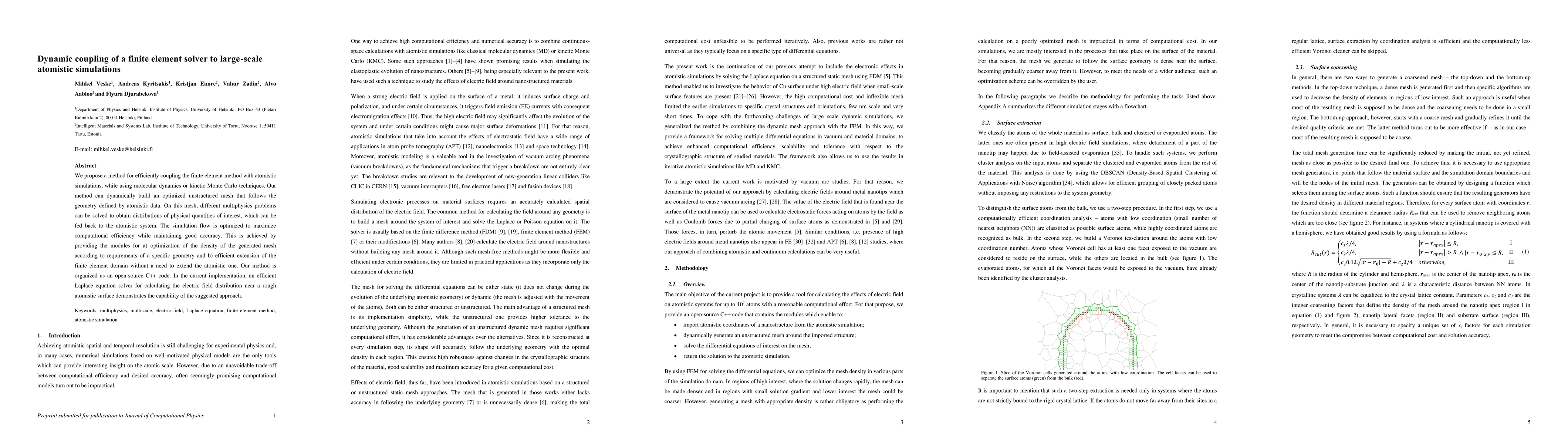 This research paper proposes a method to efficiently couple finite element simulations with atomistic methods, enabling dynamic mesh generation and optimization for maximum computational efficiency.