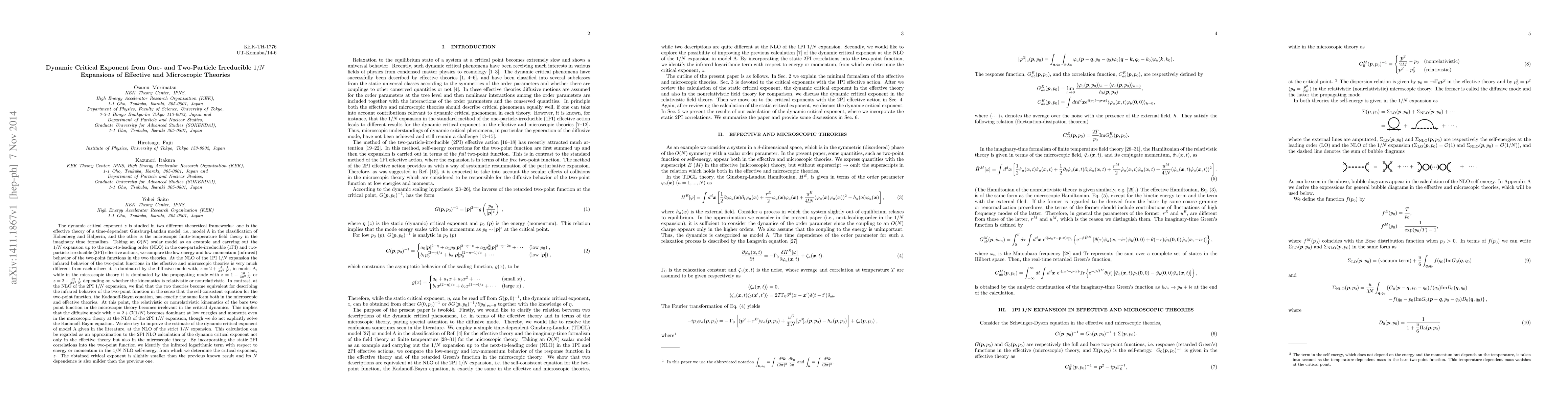 This paper investigates the dynamic critical exponent from both effective and microscopic theories using a TDGL model and finite-temperature field theory. It reveals that while the 1PI 1/N expansion shows a propagating mode dominance in field theory, the 2PI 1/N expansion leads to equivalence between theories, highlighting a diffusive mode dominance at low energies and momenta. The study also improves the calculation of the dynamic critical exponent in model A by incorporating static 2PI NLO correlations.