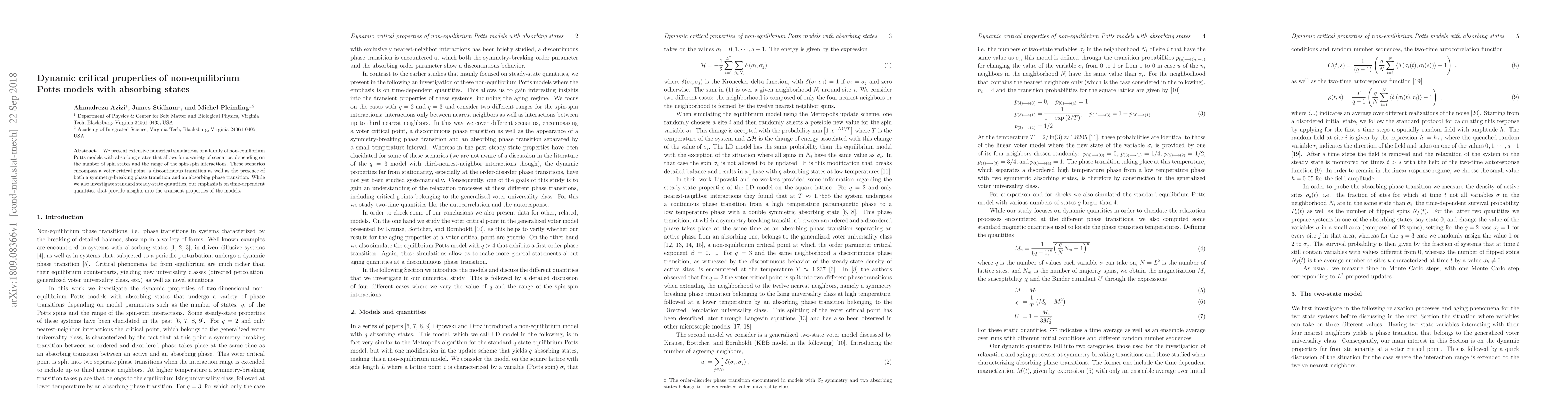 We present extensive numerical simulations of a family of non-equilibrium Potts models with absorbing states that allows for a variety of scenarios, depending on the number of spin states and the range of the spin-spin interactions. These scenarios encompass a voter critical point, a discontinuous transition as well as the presence of both a symmetry-breaking phase transition and an absorbing phase transition. While we also investigate standard steady-state quantities, our emphasis is on time-dependent quantities that provide insights into the transient properties of the models.