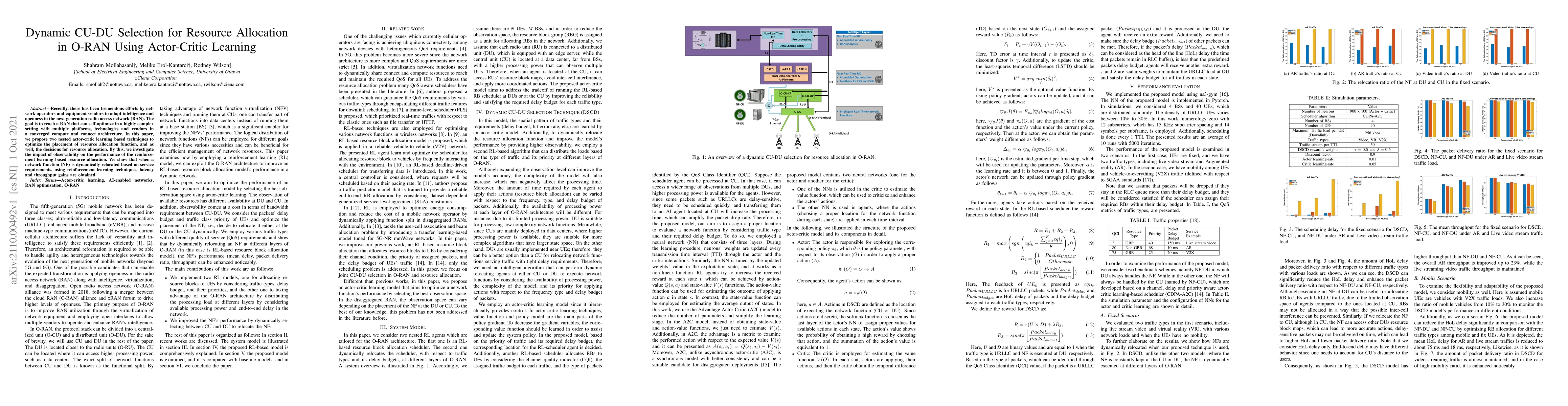 Recently, there has been tremendous efforts by network operators and equipment vendors to adopt intelligence and openness in the next generation radio access network (RAN). The goal is to reach a RAN that can self-optimize in a highly complex setting with multiple platforms, technologies and vendors in a converged compute and connect architecture. In this paper, we propose two nested actor-critic learning based techniques to optimize the placement of resource allocation function, and as well, the decisions for resource allocation. By this, we investigate the impact of observability on the performance of the reinforcement learning based resource allocation. We show that when a network function (NF) is dynamically relocated based on service requirements, using reinforcement learning techniques, latency and throughput gains are obtained.