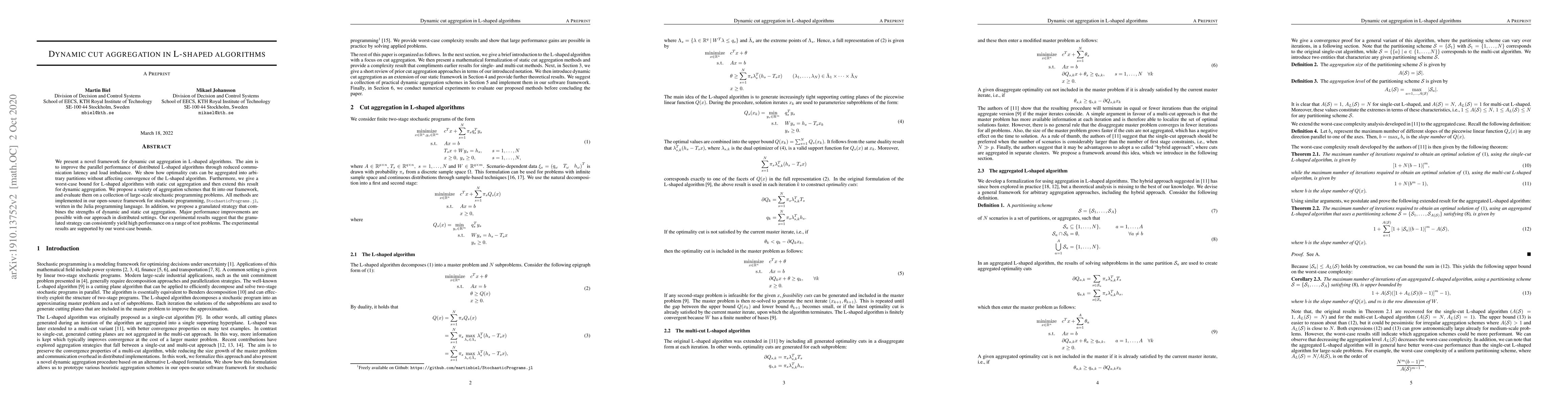 We present a novel framework for dynamic cut aggregation in L-shaped algorithms. The aim is to improve the parallel performance of distributed L-shaped algorithms through reduced communication latency and load imbalance. We show how optimality cuts can be aggregated into arbitrary partitions without affecting convergence of the L-shaped algorithm. Furthermore, we give a worst-case bound for L-shaped algorithms with static cut aggregation and then extend this result for dynamic aggregation. We propose a variety of aggregation schemes that fit into our framework, and evaluate them on a collection of large-scale stochastic programming problems. All methods are implemented in our open-source framework for stochastic programming, StochasticPrograms.jl, written in the Julia programming language. In addition, we propose a granulated strategy that combines the strengths of dynamic and static cut aggregation. Major performance improvements are possible with our approach in distributed settings. Our experimental results suggest that the granulated strategy can consistently yield high performance on a range of test problems. The experimental results are supported by our worst-case bounds.