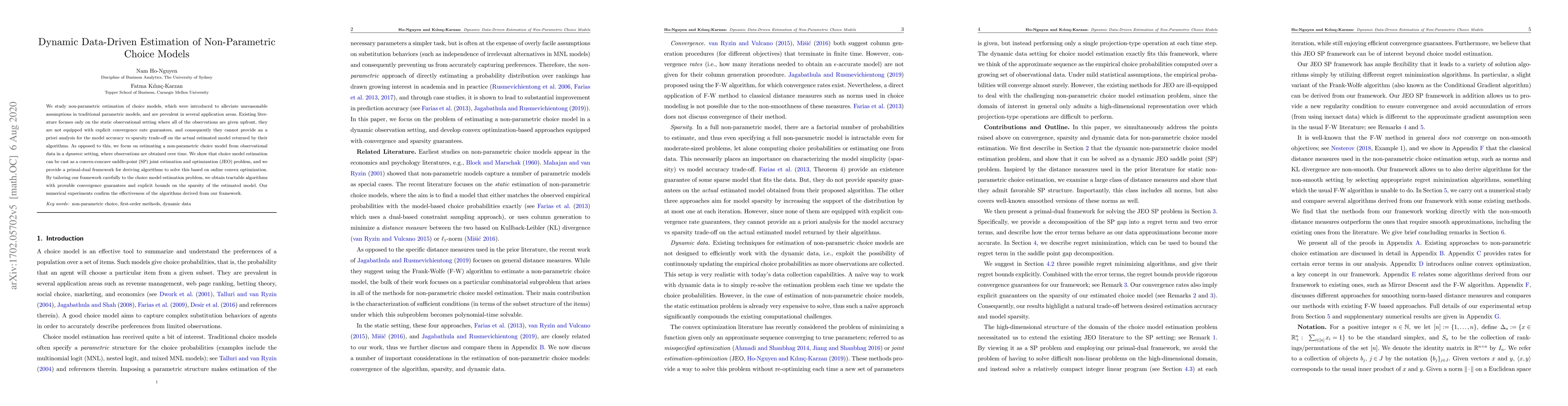 This paper proposes a dynamic, non-parametric estimation method for choice models, addressing the lack of convergence guarantees in existing static methods. It formulates the problem as a convex-concave saddle-point optimization and provides a primal-dual framework with online optimization, achieving provable convergence and sparsity bounds, validated by numerical experiments.