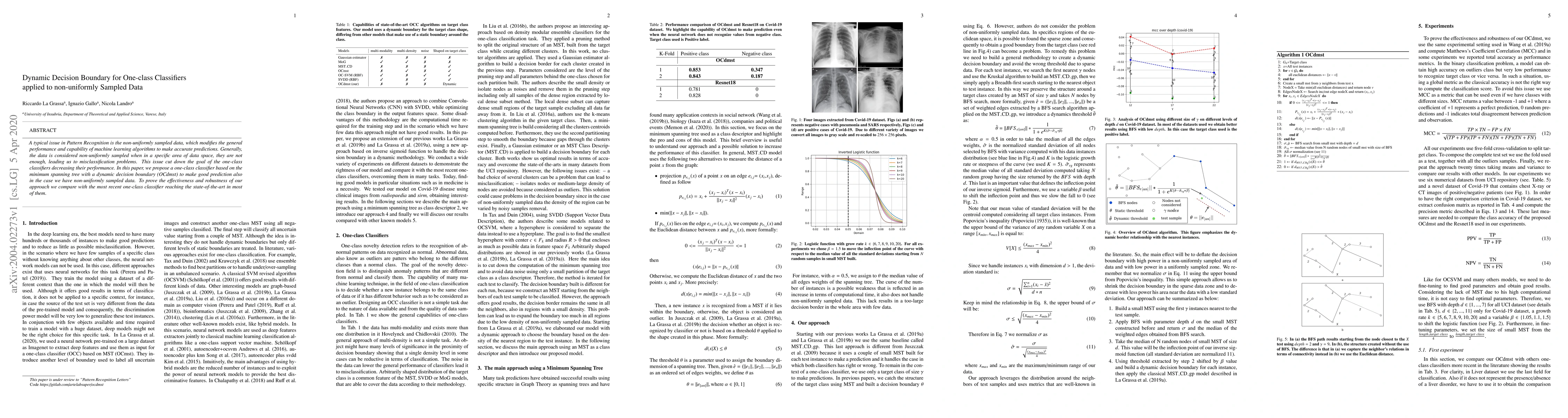 A typical issue in Pattern Recognition is the non-uniformly sampled data, which modifies the general performance and capability of machine learning algorithms to make accurate predictions. Generally, the data is considered non-uniformly sampled when in a specific area of data space, they are not enough, leading us to misclassification problems. This issue cut down the goal of the one-class classifiers decreasing their performance. In this paper, we propose a one-class classifier based on the minimum spanning tree with a dynamic decision boundary (OCdmst) to make good prediction also in the case we have non-uniformly sampled data. To prove the effectiveness and robustness of our approach we compare with the most recent one-class classifier reaching the state-of-the-art in most of them.