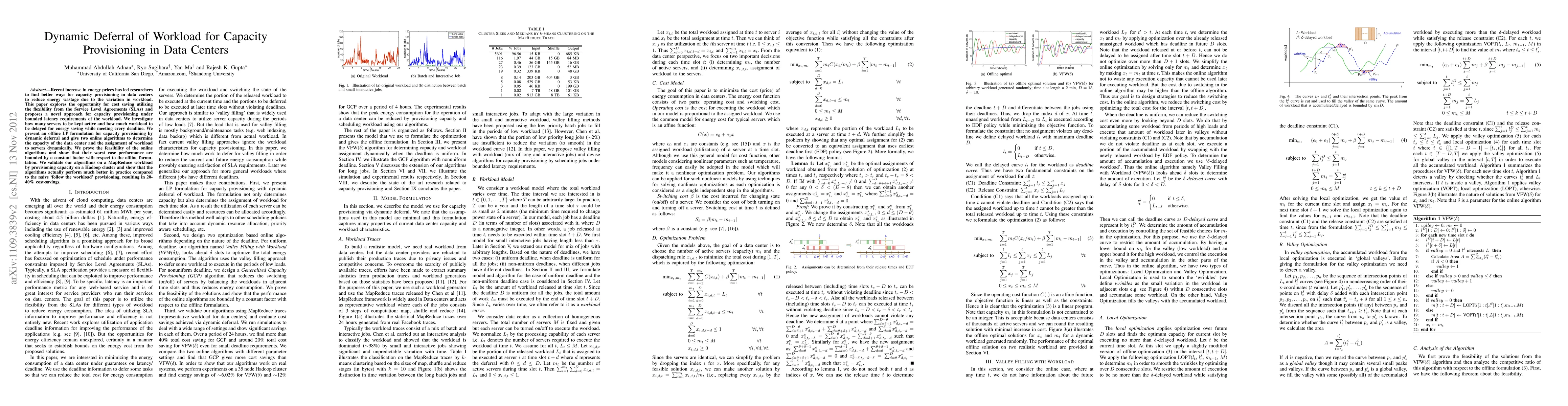 This paper proposes a novel approach for dynamic workload deferral in data centers to reduce energy costs while meeting SLAs, presenting offline and online algorithms that achieve significant cost savings (20-40%) compared to traditional provisioning methods. The algorithms ensure bounded latency and demonstrate practical efficiency on a Hadoop cluster.