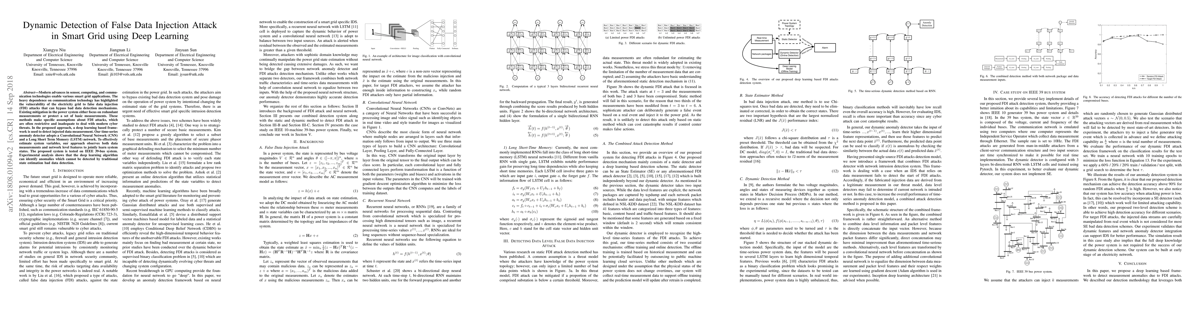 This research paper proposes a deep learning framework for detecting false data injection attacks in smart grids using a combination of Convolutional Neural Networks (CNN) and Long Short Term Memory (LSTM) networks. The approach aims to identify anomalies in data measurements that traditional methods cannot detect, enhancing the security of the power system against modern cyber threats.