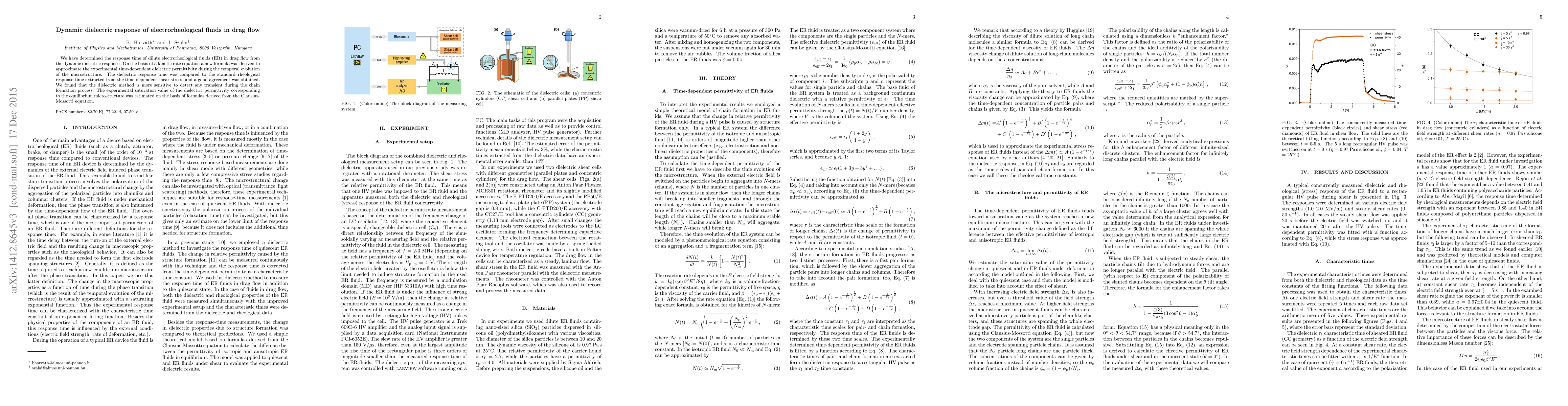 This study investigates the dynamic dielectric response of electrorheological fluids in drag flow, deriving a new formula to approximate experimental time-dependent dielectric permittivity. The dielectric response time aligns well with standard rheological response time, demonstrating the dielectric method's enhanced sensitivity to transient chain formation processes.