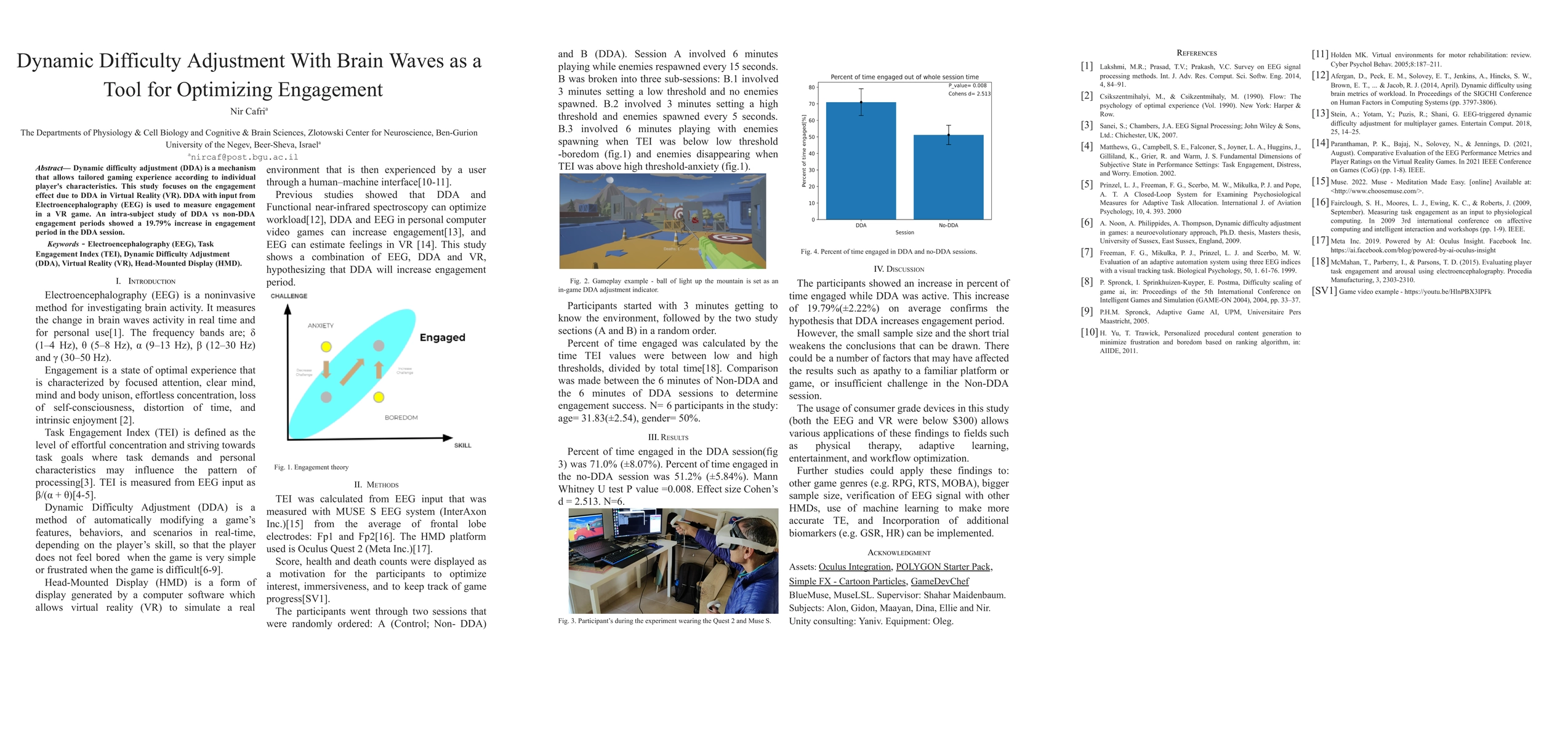 The study presents a method for real-time EEG-based brain wave monitoring to enable dynamic difficulty adjustment in VR gaming environments, optimizing player engagement.