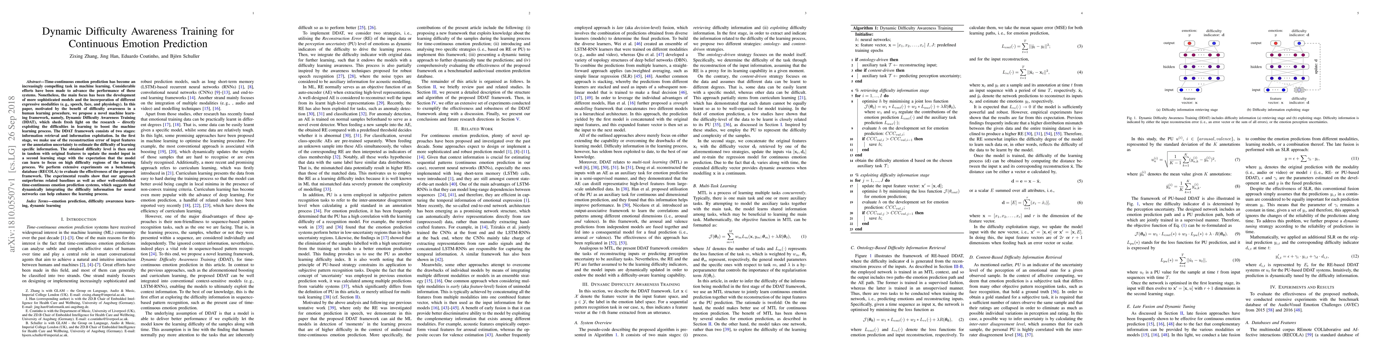 A new machine learning framework called Dynamic Difficulty Awareness Training (DDAT) is proposed to boost continuous emotion prediction systems by leveraging difficulty awareness in the learning process. DDAT outperforms related baselines and traditional time-continuous emotion prediction systems.
