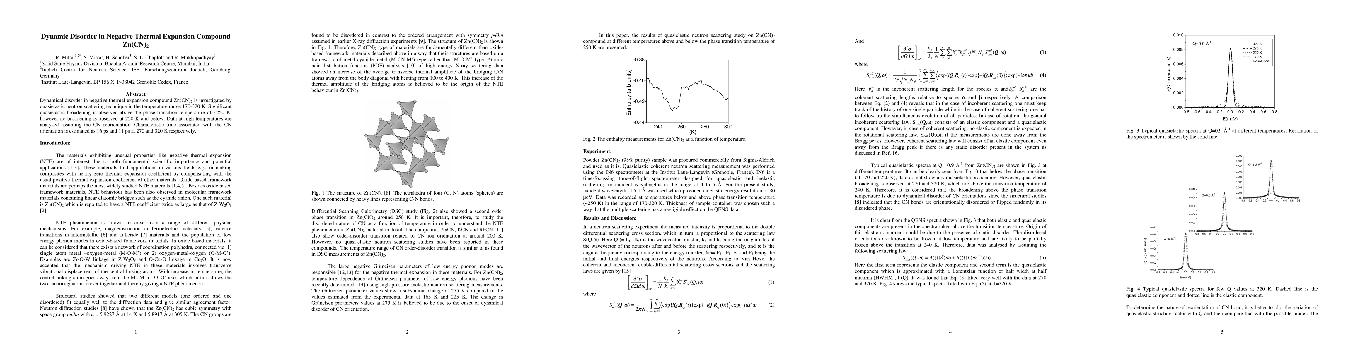 This study investigates the dynamical disorder in Zn(CN)2 using quasielastic neutron scattering, revealing significant quasielastic broadening above 250 K, indicative of CN reorientation, with characteristic times of 16 ps and 11 ps at 270 K and 320 K respectively. Below 220 K, no broadening is observed, suggesting a phase transition.