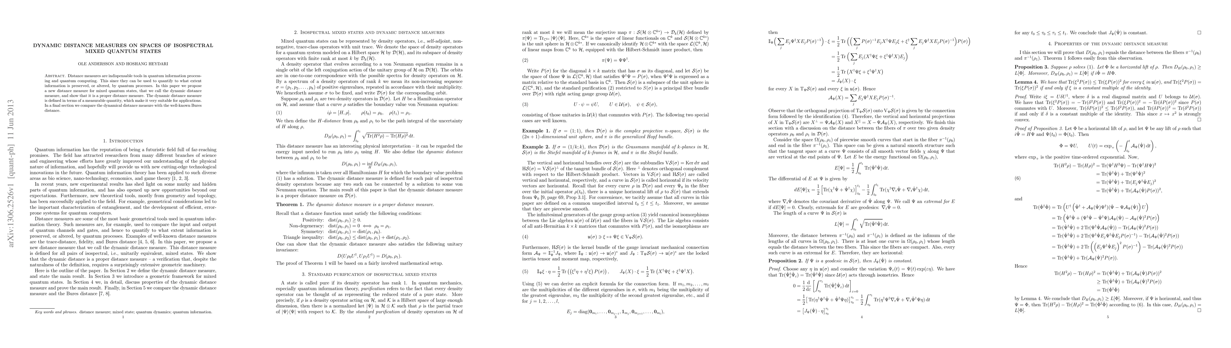 Distance measures are indispensable tools in quantum information processing and quantum computing. This since they can be used to quantify to what extent information is preserved, or altered, by quantum processes. In this paper we propose a new distance measure for mixed quantum states, that we call the dynamic distance measure, and show that it is a proper distance measure. The dynamic distance measure is defined in terms of a measurable quantity, which make it very suitable for applications. In a final section we compare the dynamical distance measure with the well-known Bures distance.