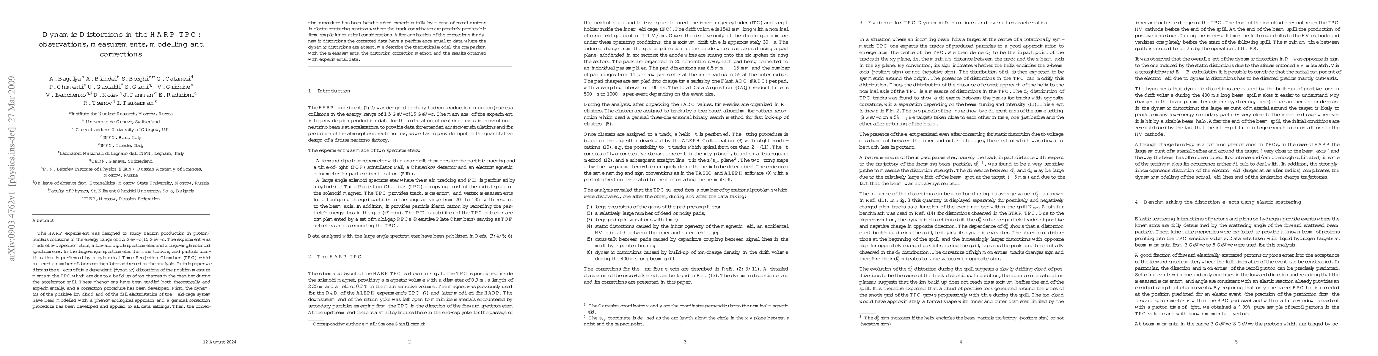 Researchers studied dynamic distortions in a particle detector at the HARP experiment, correcting for errors caused by ion charge build-up during accelerator spills, which affected hadron production measurements. The corrected data showed performance equivalent to without distortions.