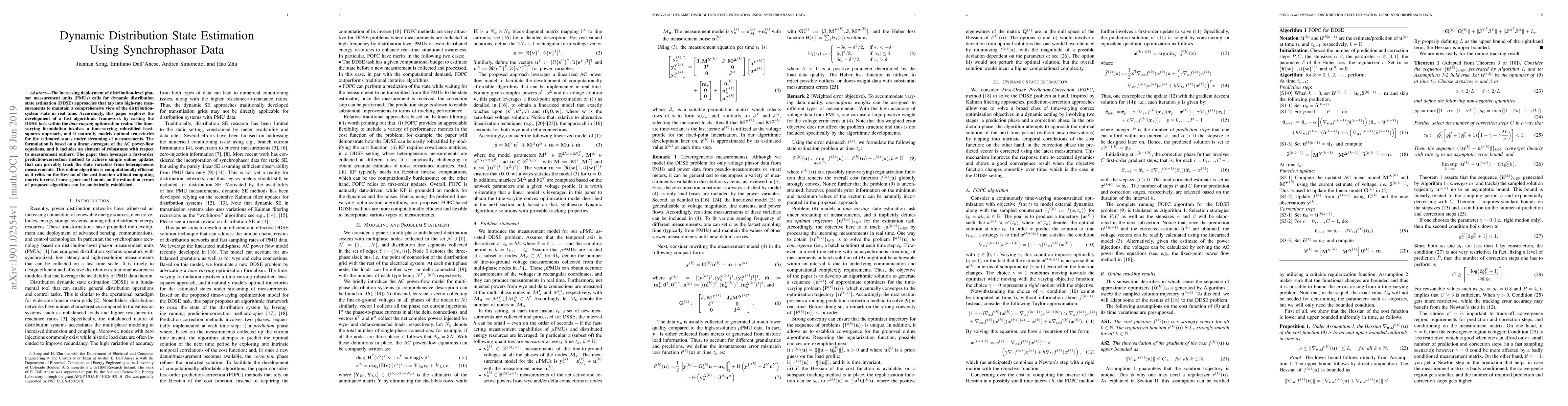 This paper develops a fast algorithmic framework for dynamic distribution state estimation using synchrophasor data, employing a time-varying optimization approach that models optimal state trajectories and incorporates robustness against measurement outliers. The proposed method leverages a first-order prediction-correction technique for online updates, ensuring computational efficiency and provable convergence.
