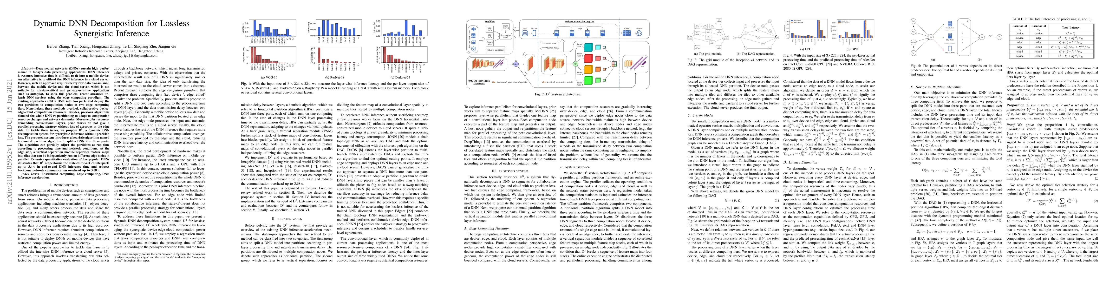 This paper proposes a new dynamic DNN decomposition system called D3 that can split neural networks into three parts for synergistic inference without precision loss, reducing end-to-end inference time up to 3.4 times.