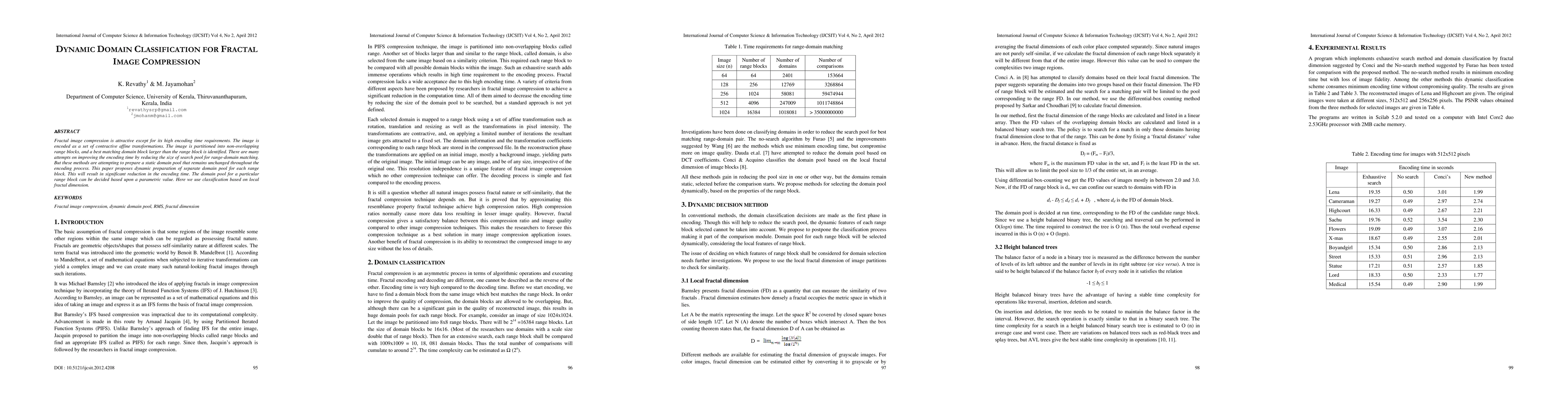 Fractal image compression is attractive except for its high encoding time requirements. The image is encoded as a set of contractive affine transformations. The image is partitioned into non-overlapping range blocks, and a best matching domain block larger than the range block is identified. There are many attempts on improving the encoding time by reducing the size of search pool for range-domain matching. But these methods are attempting to prepare a static domain pool that remains unchanged throughout the encoding process. This paper proposes dynamic preparation of separate domain pool for each range block. This will result in significant reduction in the encoding time. The domain pool for a particular range block can be selected based upon a parametric value. Here we use classification based on local fractal dimension.