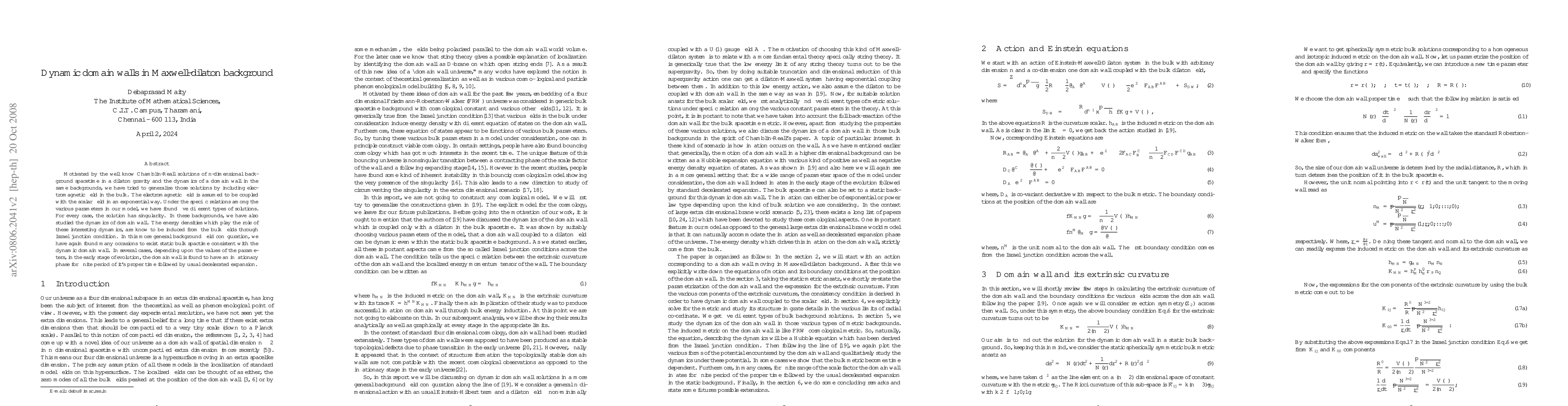 Motivated by the well know Chamblin-Reall solutions of $n$-dimensional background spacetime in a dilaton gravity and the dynamics of a domain wall in the same backgrounds, we have tried to generalize those solutions by including electromagnetic field in the bulk. The electromagnetic field is assumed to be coupled with the scalar field in an exponential way. Under the specific relations among the various parameters in our model, we have found five different types of solutions. For every case, the solution has singularity. In these backgrounds, we have also studied the dynamics of domain wall. The energy densities which play the role of these interesting dynamics, are know to be induced from the bulk fields through Israel junction condition. In this more general background field configuration, we have again found many occasions to exist static bulk spactime consistent with the dynamic domain wall. In several cases, depending upon the values of the parameters, in the early stage of evolution, the domain wall is found to have an inflationary phase for finite period of it's proper time followed by usual decelerated expansion.