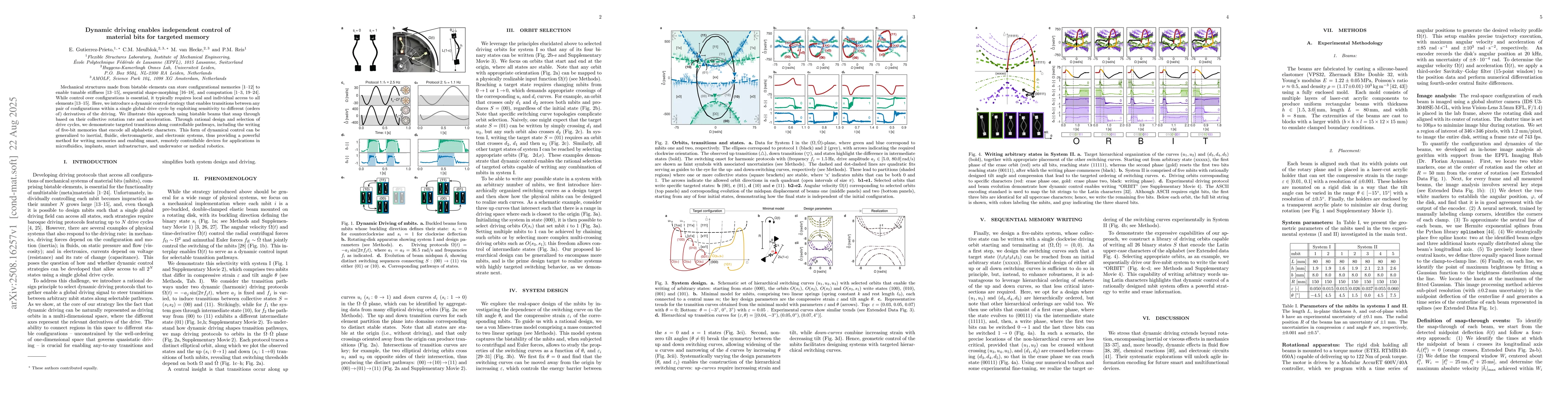 Mechanical structures made from bistable elements can store configurational memories to enable tunable stiffness, sequential shape-morphing, and computation. While control over configurations is essential, it typically requires local and individual access to all elements. Here, we introduce a dynamic control strategy that enables transitions between any pair of configurations within a single global drive cycle by exploiting sensitivity to different (orders of) derivatives of the driving. We illustrate this approach using bistable beams that snap through based on their collective rotation rate and acceleration. Through rational design and selection of drive cycles, we demonstrate targeted transitions along controllable pathways, including the writing of five-bit memories that encode all alphabetic characters. This form of dynamical control can be generalized to inertial, fluidic, electromagnetic, and electronic systems, thus providing a powerful method for writing memories and enabling smart, remotely controllable devices for applications in microfluidics, implants, smart infrastructure, and underwater or medical robotics.
