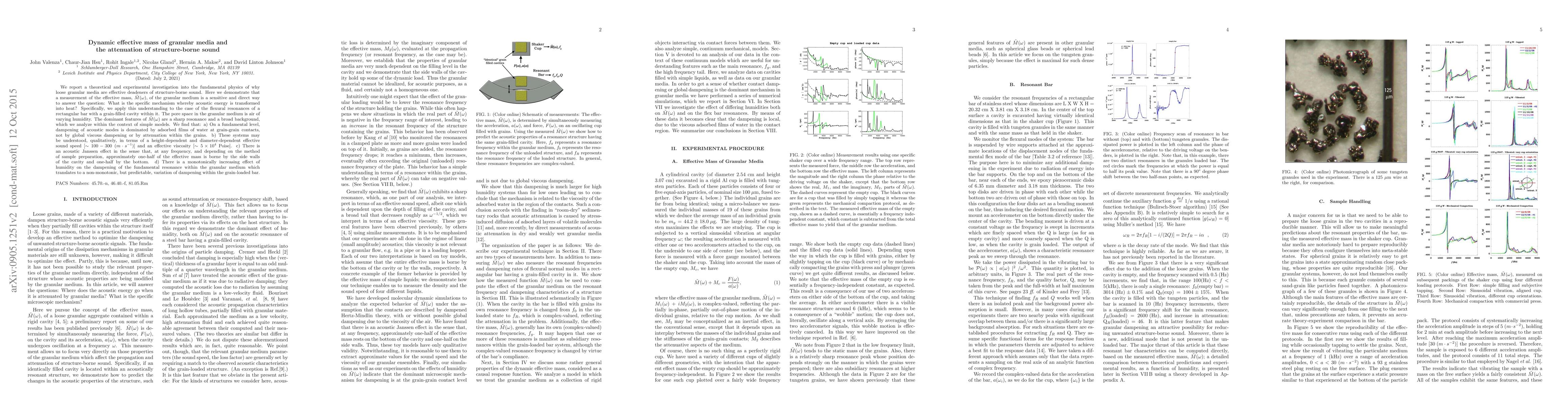 This study investigates the dynamic effective mass of granular media and its impact on acoustic attenuation in structures. It reveals that the effective mass exhibits a sharp resonance and a broad background, influenced by factors like effective sound speed and viscosity, and is partially supported by cavity walls. Humidity-induced damping is primarily due to adsorbed water films, affecting the dampening of flexural resonances in grain-filled bars.