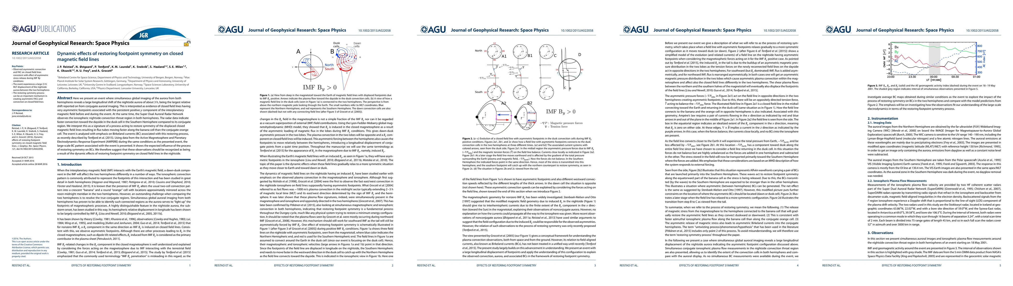 This study reports a significant longitudinal shift in the nightside aurora, interpreted as asymmetric footpoints of closed magnetic field lines due to a persistent interplanetary magnetic field. Observations indicate a process restoring symmetry in the magnetic field lines, evidenced by faster ionospheric convection in the Southern Hemisphere, and associated Birkeland currents, suggesting dynamic effects of restoring footpoint symmetry on closed magnetic field lines.