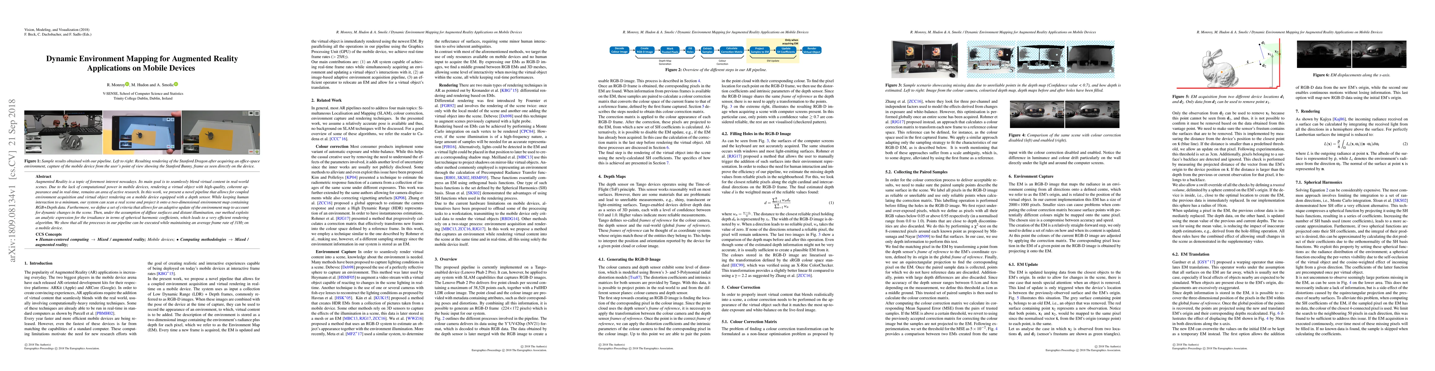 Augmented Reality is a topic of foremost interest nowadays. Its main goal is to seamlessly blend virtual content in real-world scenes. Due to the lack of computational power in mobile devices, rendering a virtual object with high-quality, coherent appearance and in real-time, remains an area of active research. In this work, we present a novel pipeline that allows for coupled environment acquisition and virtual object rendering on a mobile device equipped with a depth sensor. While keeping human interaction to a minimum, our system can scan a real scene and project it onto a two-dimensional environment map containing RGB+Depth data. Furthermore, we define a set of criteria that allows for an adaptive update of the environment map to account for dynamic changes in the scene. Then, under the assumption of diffuse surfaces and distant illumination, our method exploits an analytic expression for the irradiance in terms of spherical harmonic coefficients, which leads to a very efficient rendering algorithm. We show that all the processes in our pipeline can be executed while maintaining an average frame rate of 31Hz on a mobile device.