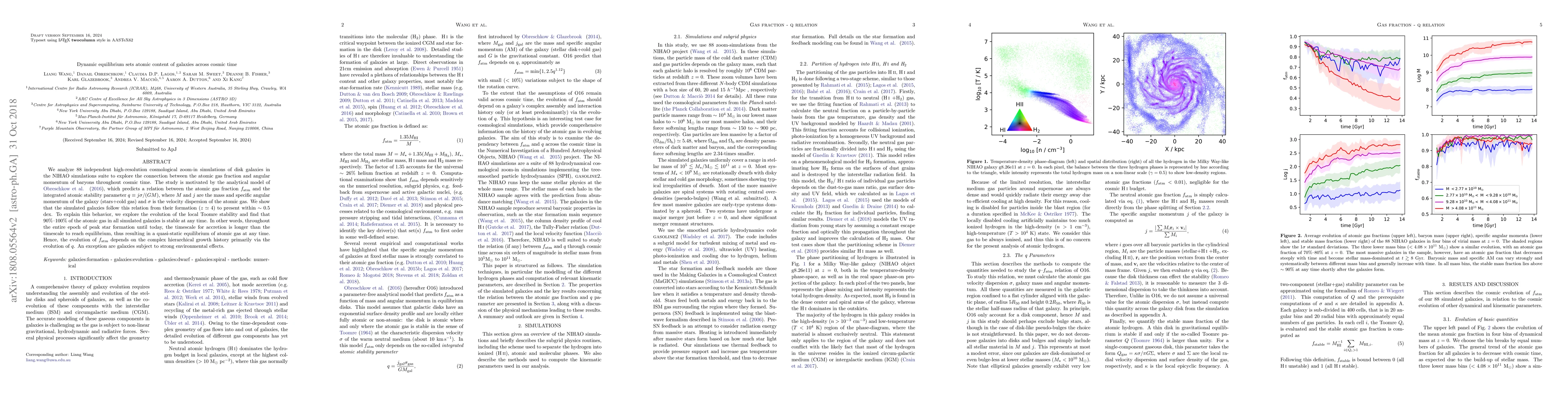 We analyze 88 independent high-resolution cosmological zoom-in simulations of disk galaxies in the NIHAO simulations suite to explore the connection between the atomic gas fraction and angular momentum of baryons throughout cosmic time. The study is motivated by the analytic model of \citet{obreschkow16}, which predicts a relation between the atomic gas fraction $f_{\rm atm}$ and the global atomic stability parameter $q \equiv j\sigma / (GM)$, where $M$ and $j$ are the mass and specific angular momentum of the galaxy (stars+cold gas) and $\sigma$ is the velocity dispersion of the atomic gas. We show that the simulated galaxies follow this relation from their formation ($z\simeq4$) to present within $\sim 0.5$ dex. To explain this behavior, we explore the evolution of the local Toomre stability and find that $90\%$--$100\%$ of the atomic gas in all simulated galaxies is stable at any time. In other words, throughout the entire epoch of peak star formation until today, the timescale for accretion is longer than the timescale to reach equilibrium, thus resulting in a quasi-static equilibrium of atomic gas at any time. Hence, the evolution of $f_{\rm atm}$ depends on the complex hierarchical growth history primarily via the evolution of $q$. An exception are galaxies subject to strong environmental effects.