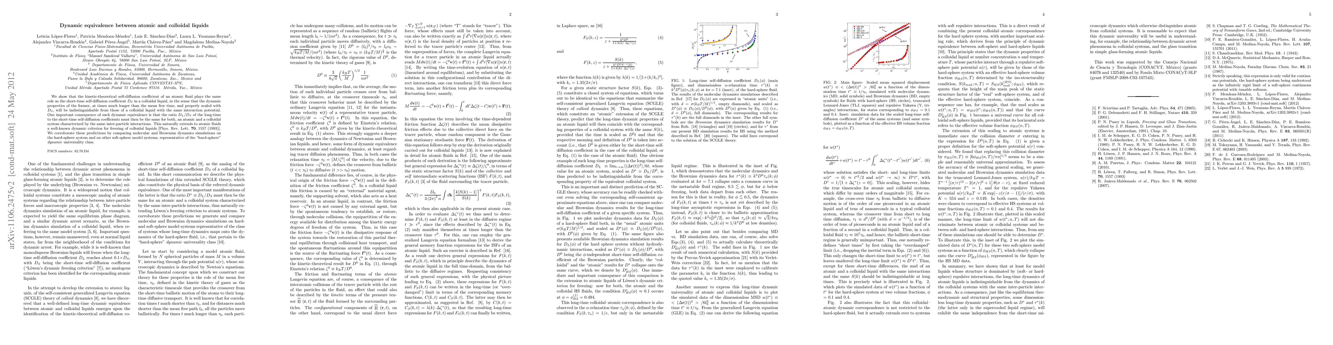 We show that the kinetic-theoretical self-diffusion coefficient of an atomic fluid plays the same role as the short-time self-diffusion coefficient D_S in a colloidal liquid, in the sense that the dynamic properties of the former, at times much longer than the mean free time, and properly scaled with D_S, will indistinguishable from those of a colloidal liquid with the same interaction potential. One important consequence of such dynamic equivalence is that the ratio D_L/ D_S of the long-time to the short-time self-diffusion coefficients must then be the same for both, an atomic and a colloidal system characterized by the same inter-particle interactions. This naturally extends to atomic fluids a well-known dynamic criterion for freezing of colloidal liquids[Phys. Rev. Lett. 70, 1557 (1993)]. We corroborate these predictions by comparing molecular and Brownian dynamics simulations on (soft- and hard-sphere) model systems, representative of what we may refer to as the "hard-sphere" dynamic universality class.