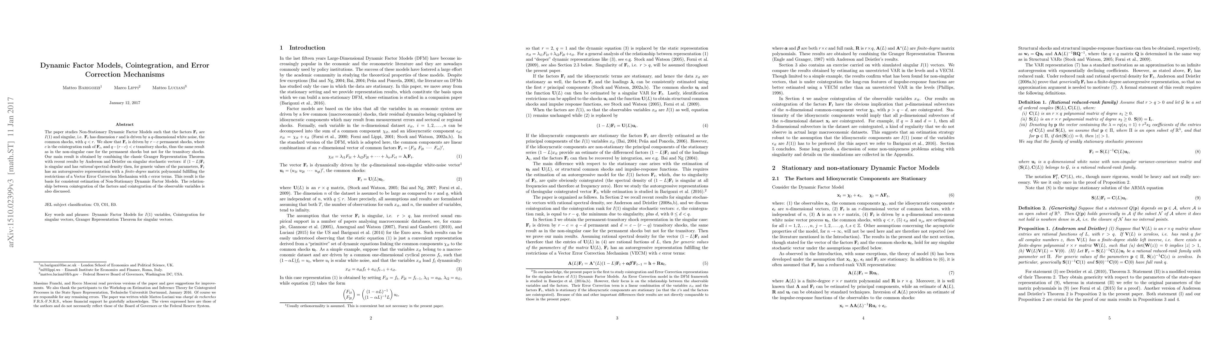 $\mathbf F_t$ are $I(1)$ and singular, i.e. $\mathbf F_t$ has dimension $r$ and