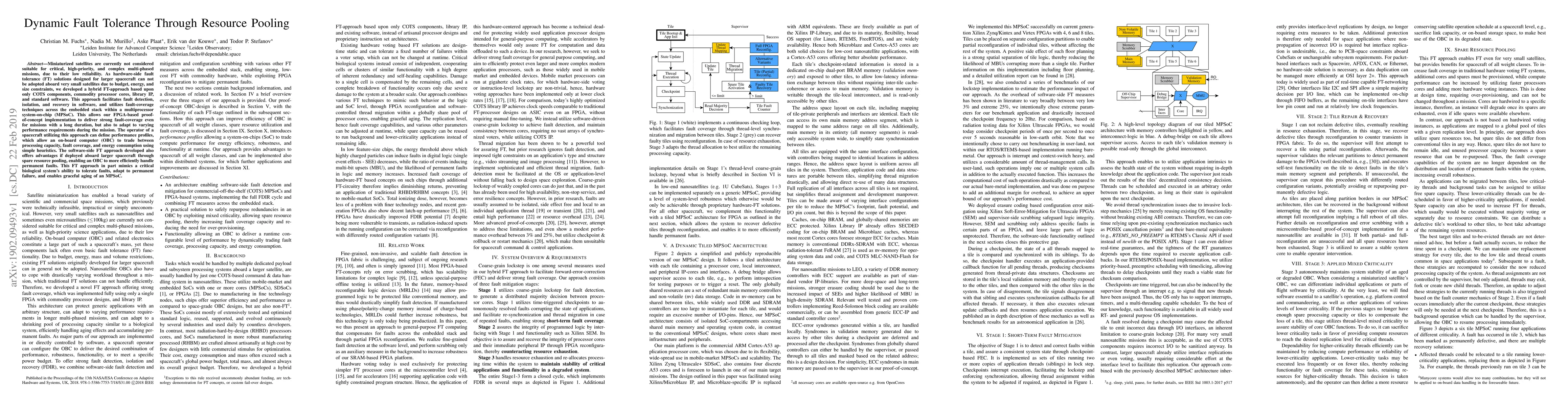 This research proposes a hybrid fault tolerance approach for miniaturized satellites using COTS components and software-based fault detection and recovery techniques within an MPSoC, enabling strong fault coverage and adaptability. The method also allows for resource pooling to enhance fault handling efficiency, mimicking biological systems' resilience to failures.