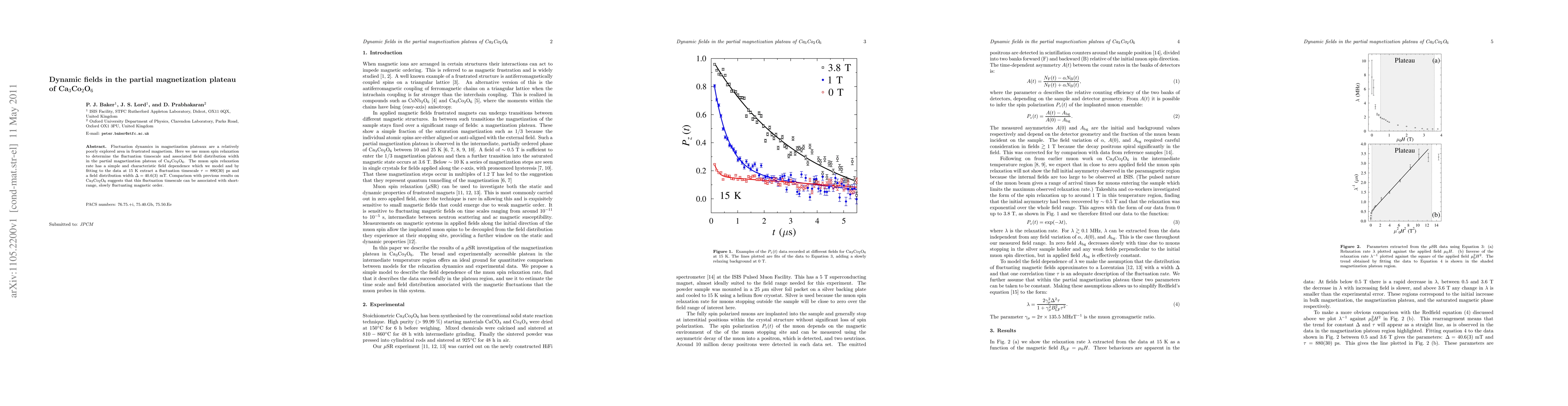 Fluctuation dynamics in magnetization plateaux are a relatively poorly explored area in frustrated magnetism. Here we use muon spin relaxation to determine the fluctuation timescale and associated field distribution width in the partial magnetization plateau of Ca3Co2O6. The muon spin relaxation rate has a simple and characteristic field dependence which we model and by fitting to the data at 15 K extract a fluctuation timescale tau = 880(30) ps and a field distribution width Delta = 40.6(3) mT. Comparison with previous results on Ca3Co2O6 suggests that this fluctuation timescale can be associated with short-range, slowly fluctuating magnetic order.