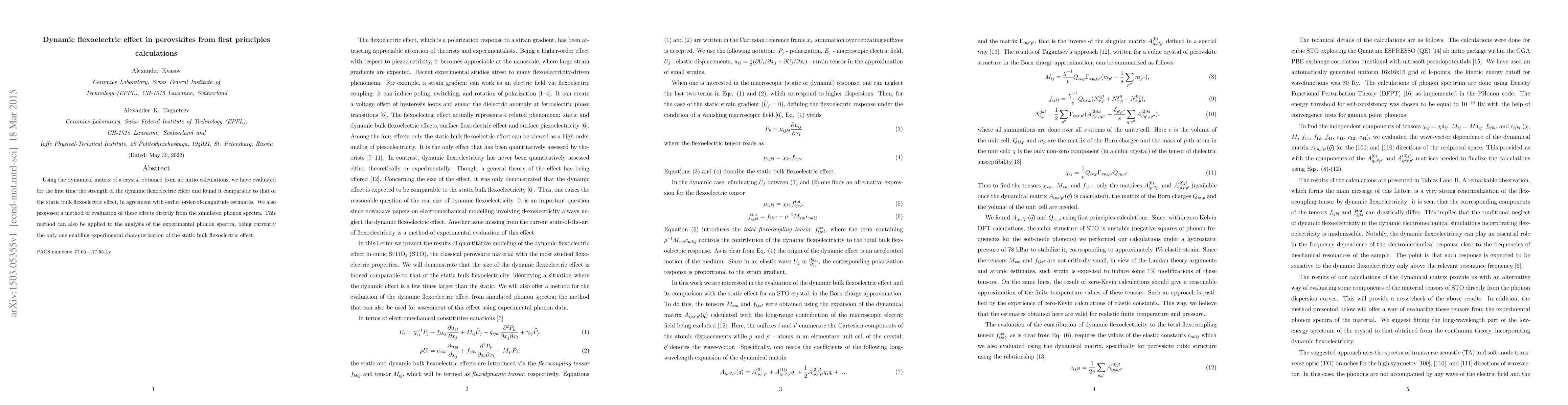Summary: This paper evaluates the dynamic flexoelectric effect in perovskites using first-principles calculations, finding its strength comparable to the static bulk effect. It introduces a method for assessing these effects from simulated phonon spectra, applicable to experimental phonon data analysis.