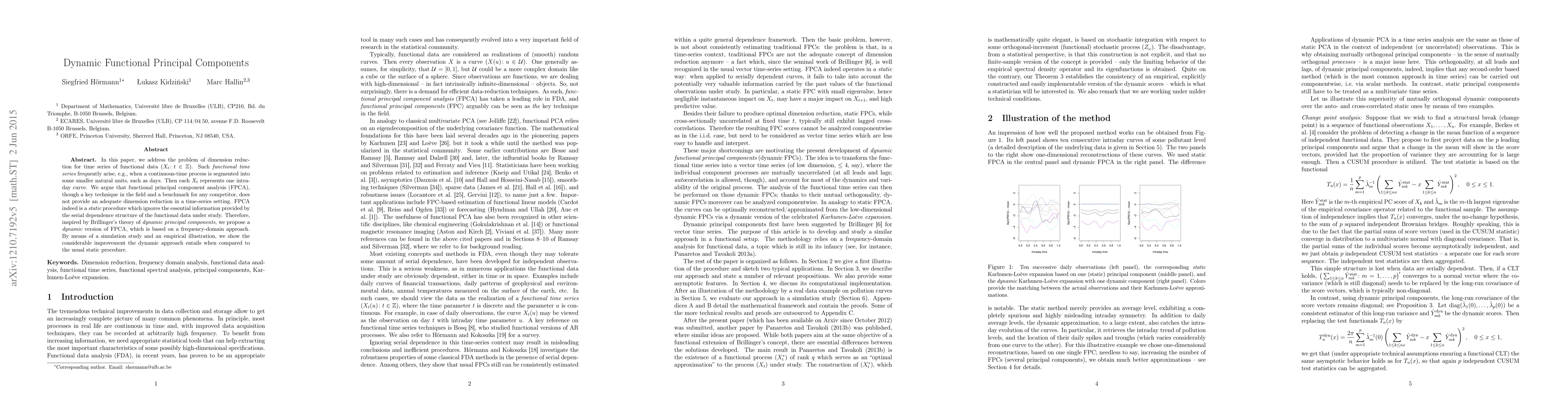 The paper proposes a dynamic functional principal component analysis (FPCA) for time series of functional data, contrasting it with the static FPCA. It introduces a frequency-domain approach inspired by Brillinger's dynamic principal components theory.