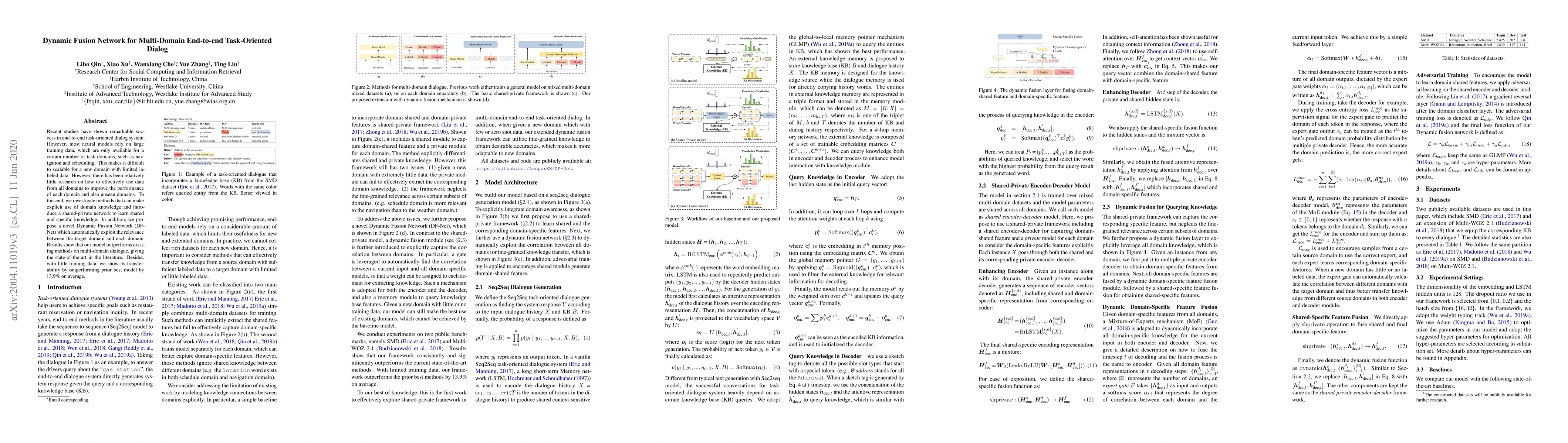 The paper proposes a Dynamic Fusion Network (DF-Net) that utilizes domain knowledge to enhance multi-domain end-to-end task-oriented dialog systems, achieving state-of-the-art performance even with limited training data in new domains. DF-Net effectively leverages shared and private knowledge across domains to improve dialog system scalability and transferability.