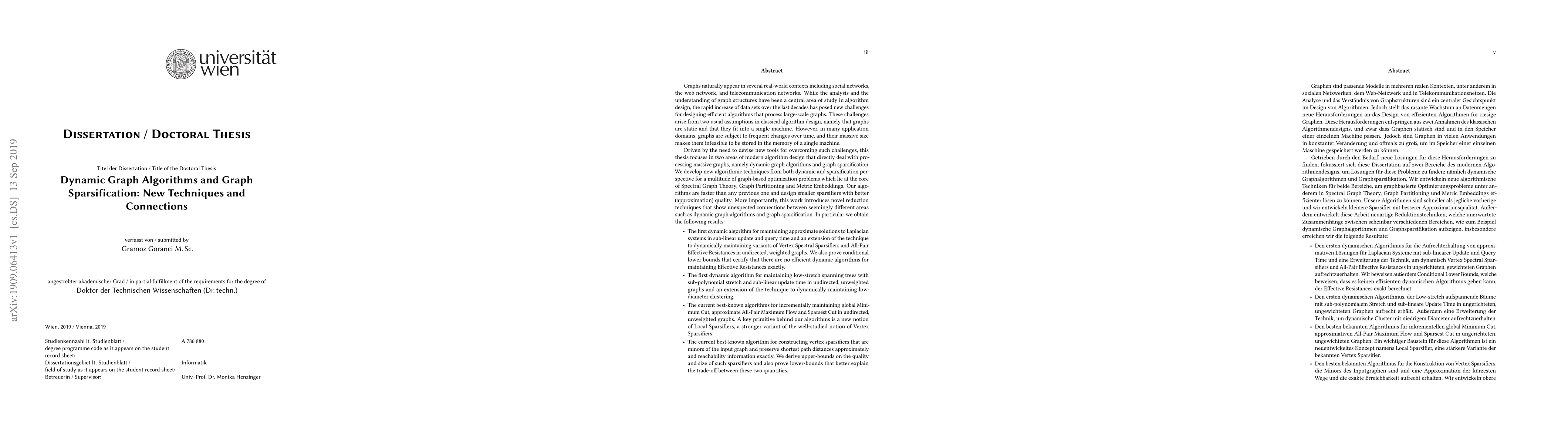 This paper develops new dynamic graph algorithms and graph sparsification techniques to address the challenges of processing massive, frequently changing graphs. The proposed methods outperform previous algorithms and establish novel connections between dynamic graph algorithms and graph sparsification.